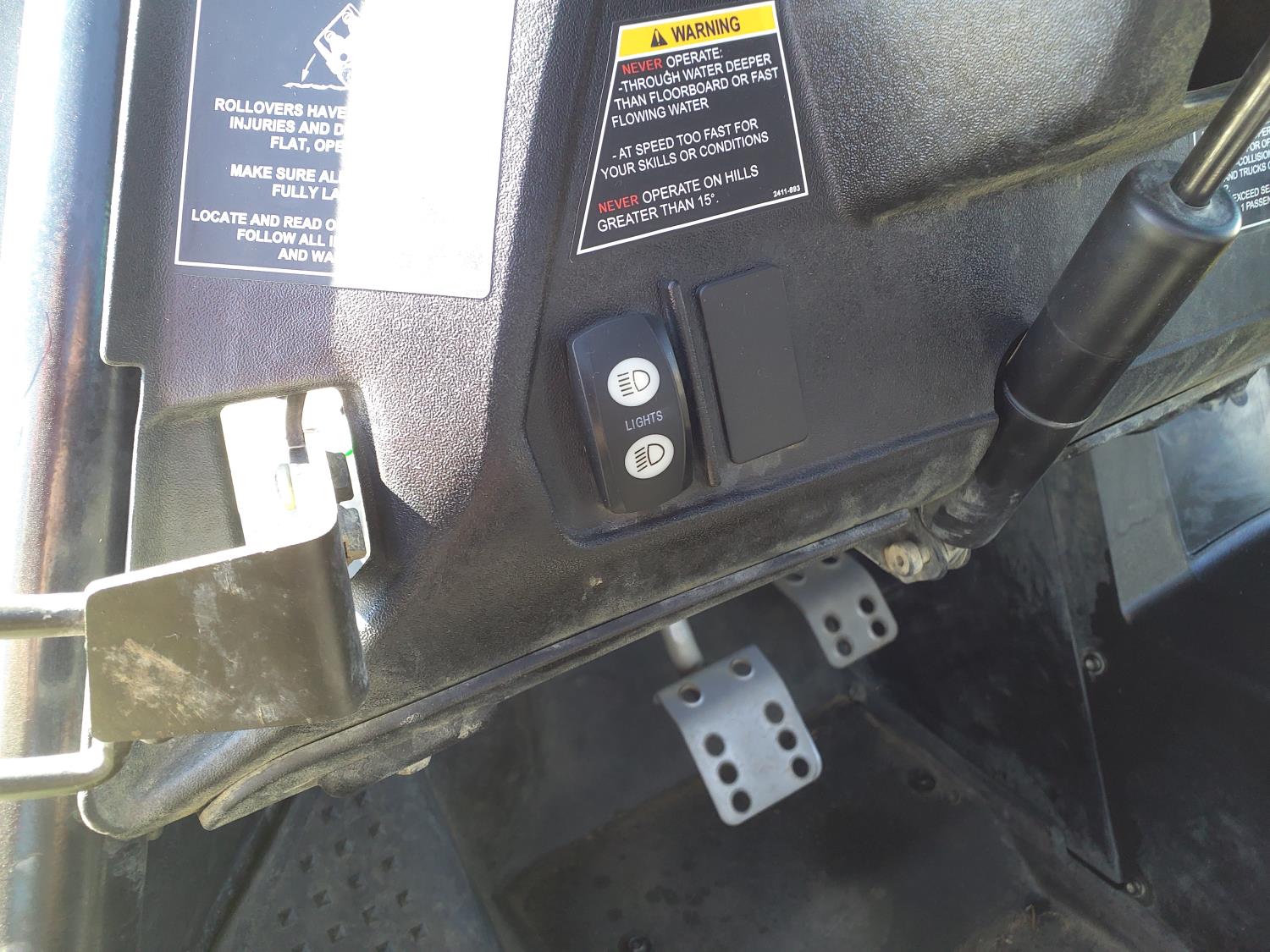 951 cc fuel injected water cooled engine, CVT transmission, Hi/Lo range, reverse, 2 passengers, windshield, front winch, front locking differential, 27X9.00R14 front tires, 27X11.00R14 rear tires
