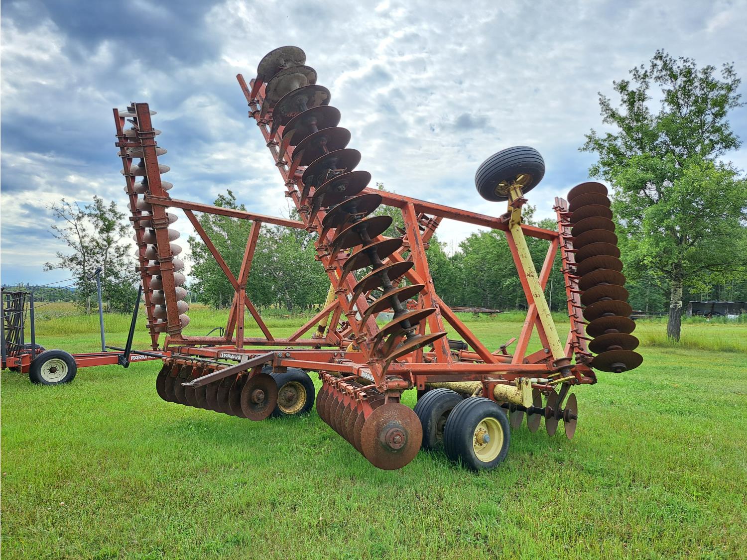 front: 8 inch spacing smooth 20 inch discs, rear: 8 inch spacing smooth 21 inch discs, 11L-15 tires