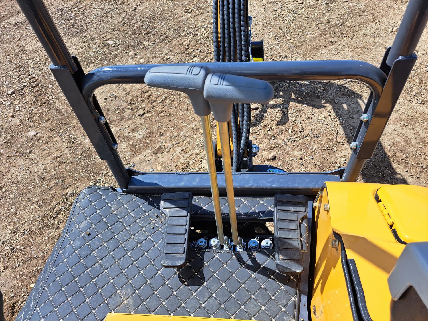 pilot controls, Yanmar 15HP diesel ngine gas engine, 16 inch dig bucket, hydraulic thumb, 1 auxiliary hydraulics, backfill blade, rubber tracks