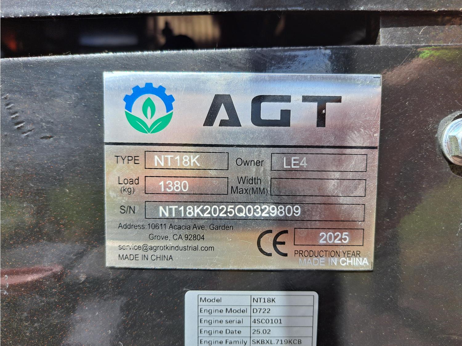 413 2025 AGT NT18K Mini Excavator (Unused)