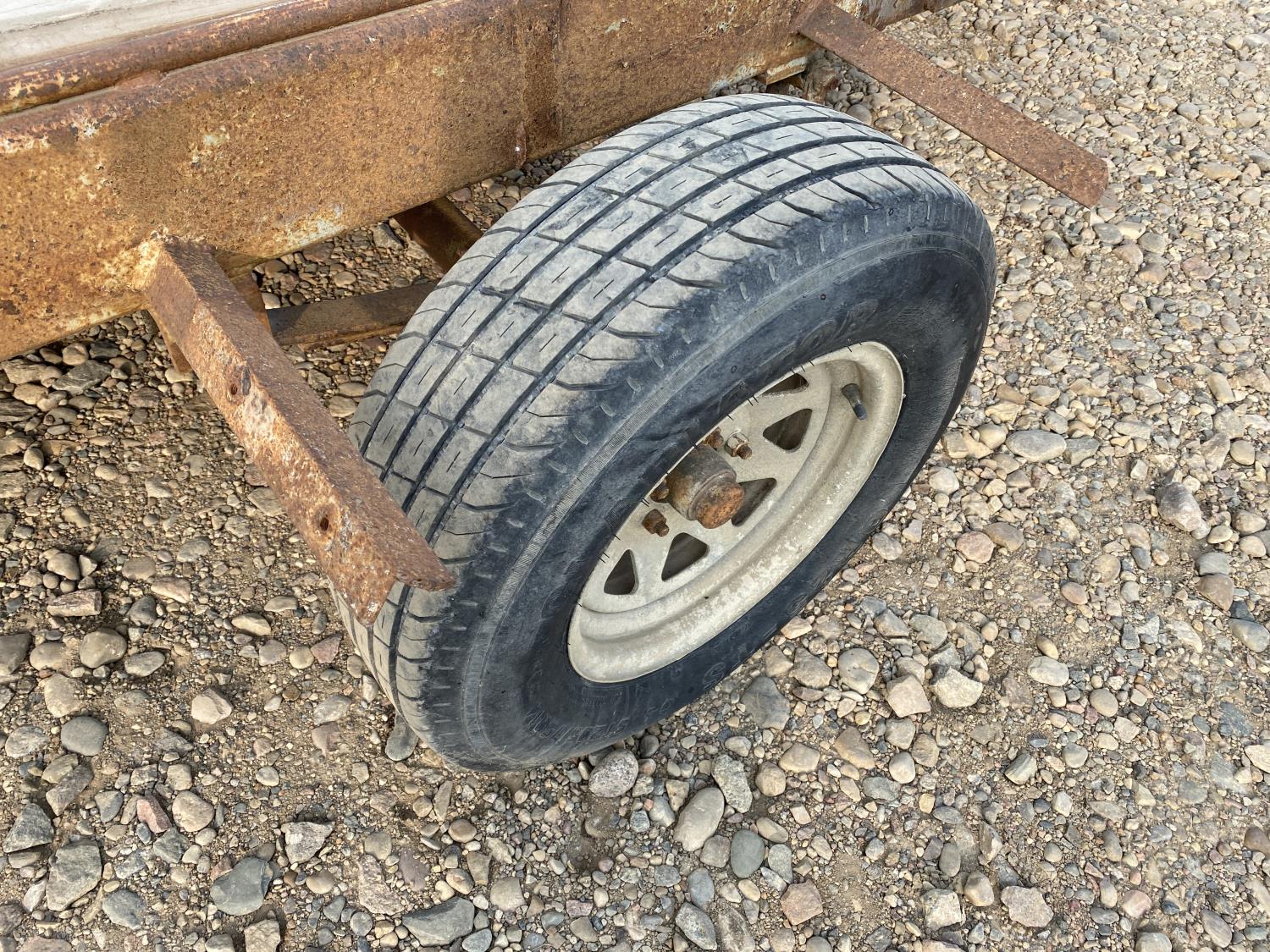63 inch wide deck, wood deck, spring suspension, pintle hitch, 205/75R14 tires