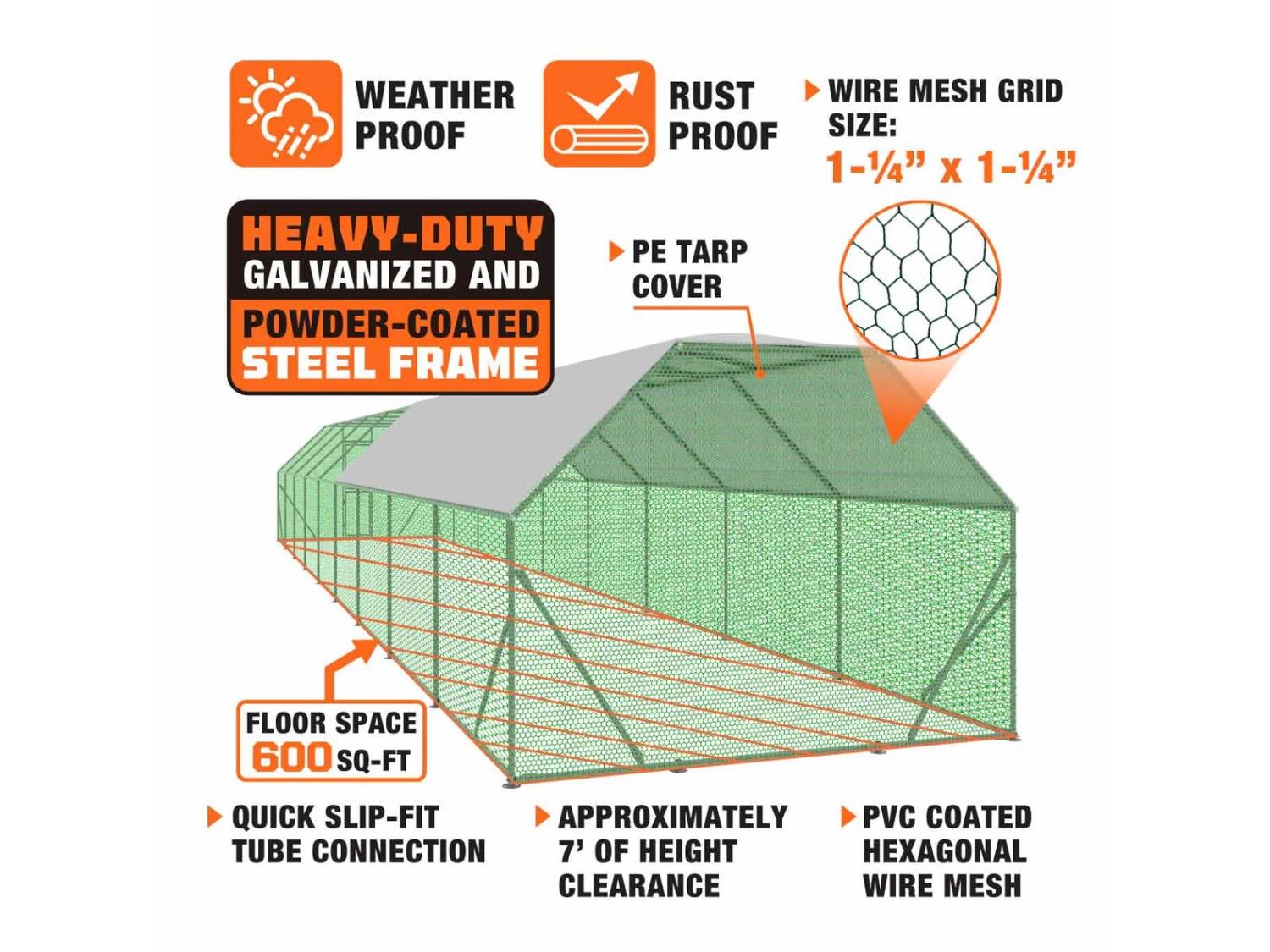 Galvanized Steel, 600 Sq-Ft, Lockable Gate, PVC Coated Mesh