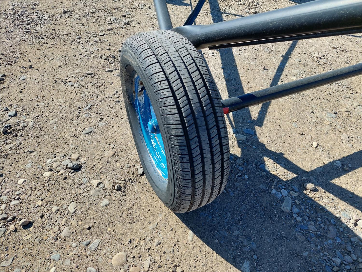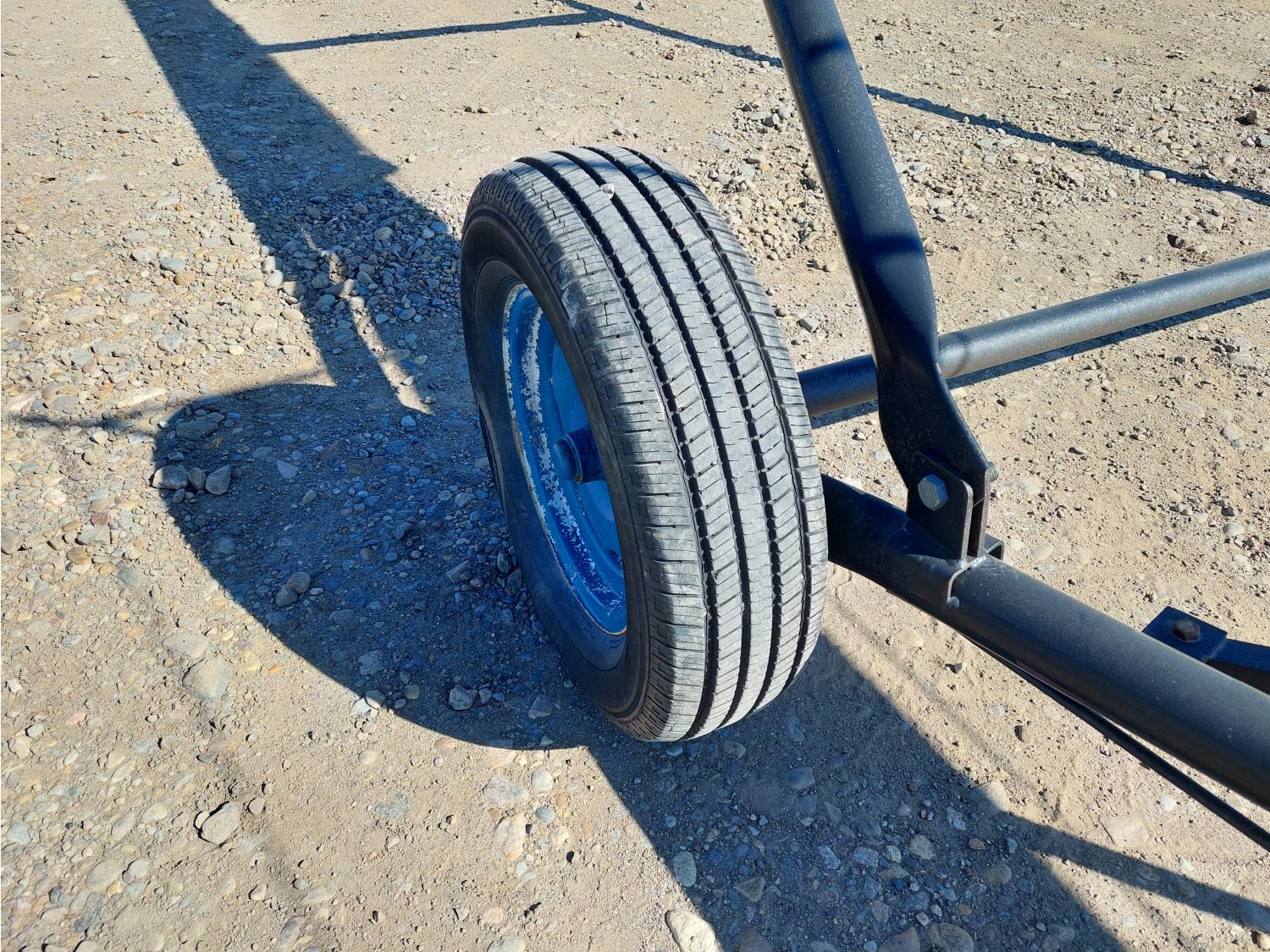 double flight hopper, reverser, hydraulic lift, 60 inch W x 32 inch L hopper, 215/70R15 tires