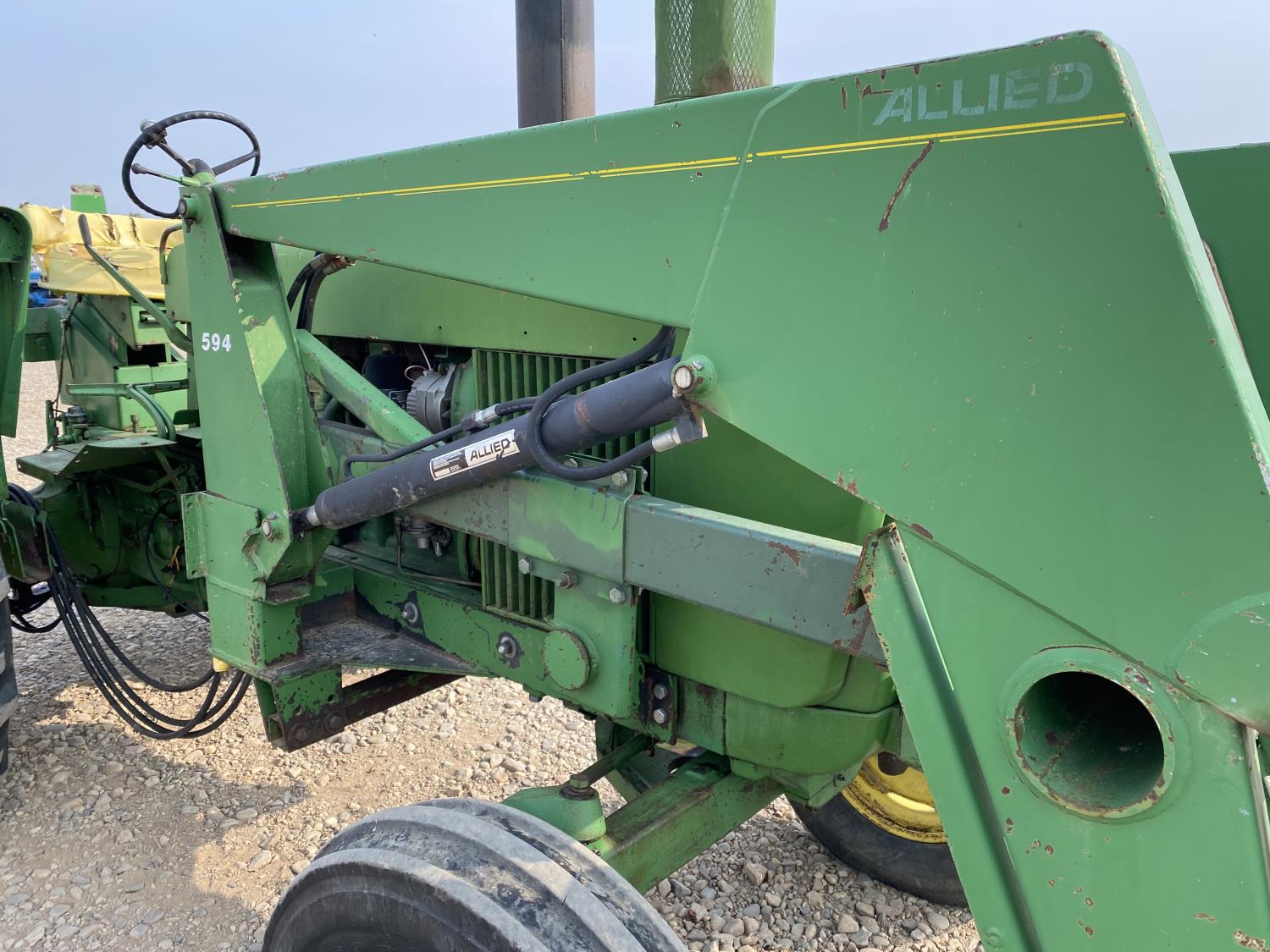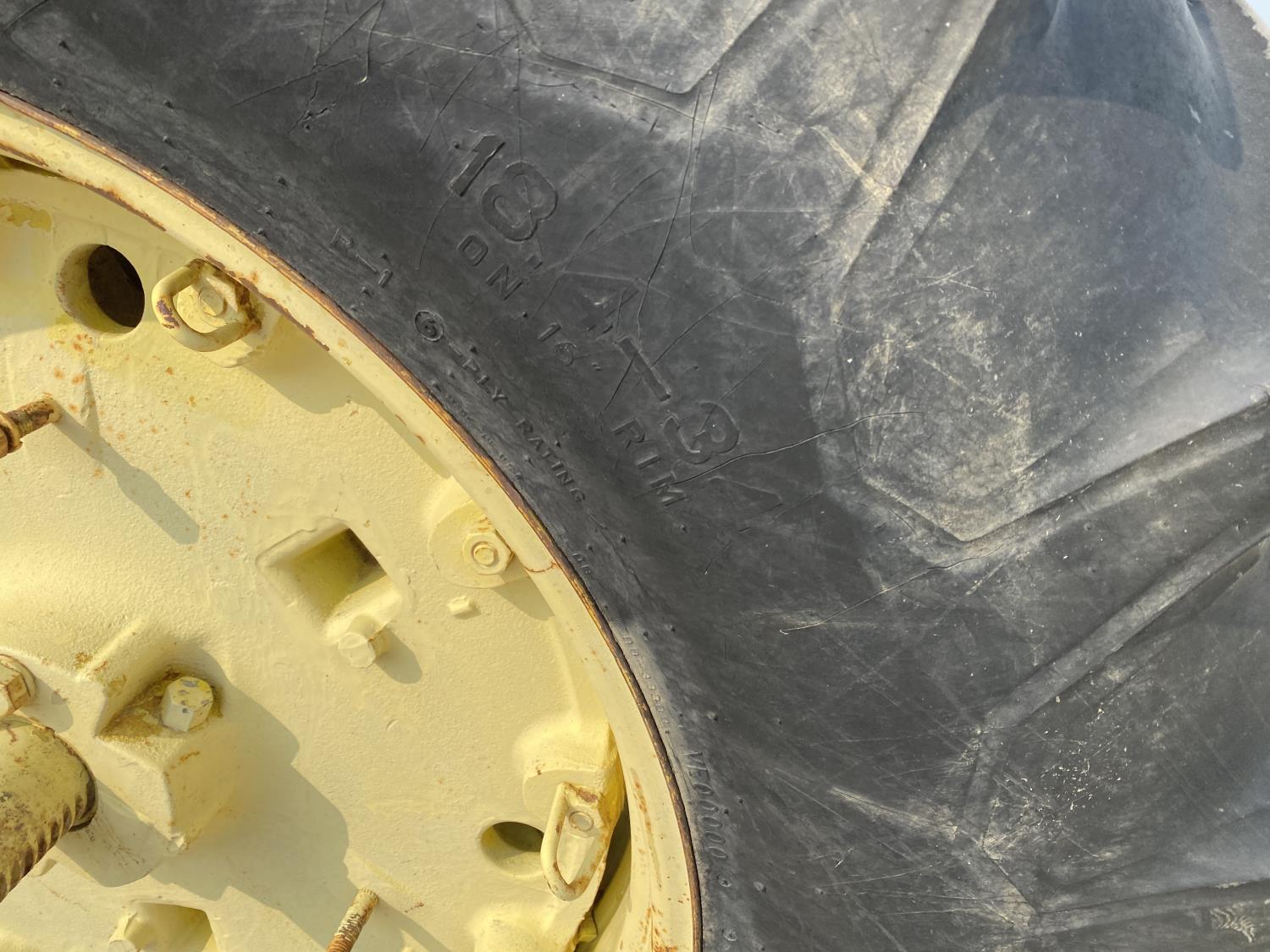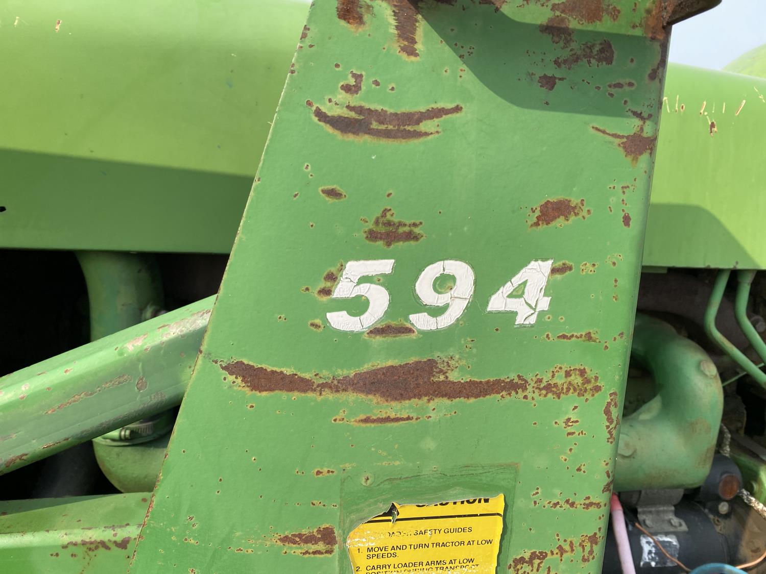 Allied 594 loader, 52 inch bale forks,6.6 L 6 cylinder 101 HP, diesel engine, 95 PTO HP, 8 speed partial synchro transmission, 18 GPM hydraulic pump, open station platform, 540/1000 PTO, 1 rear hydraulic outlets, 7.50-18 front tires, 18-34 rear tires