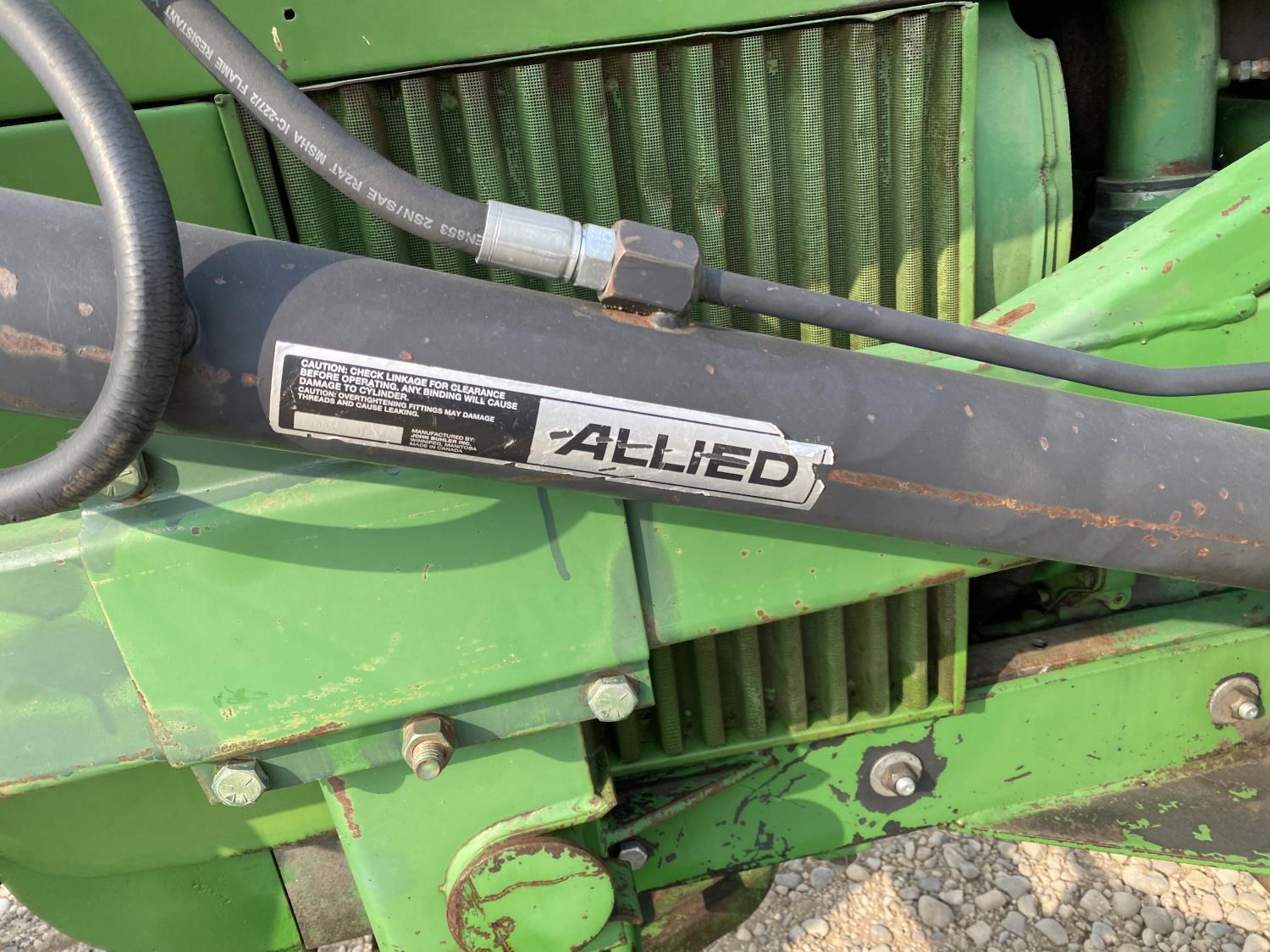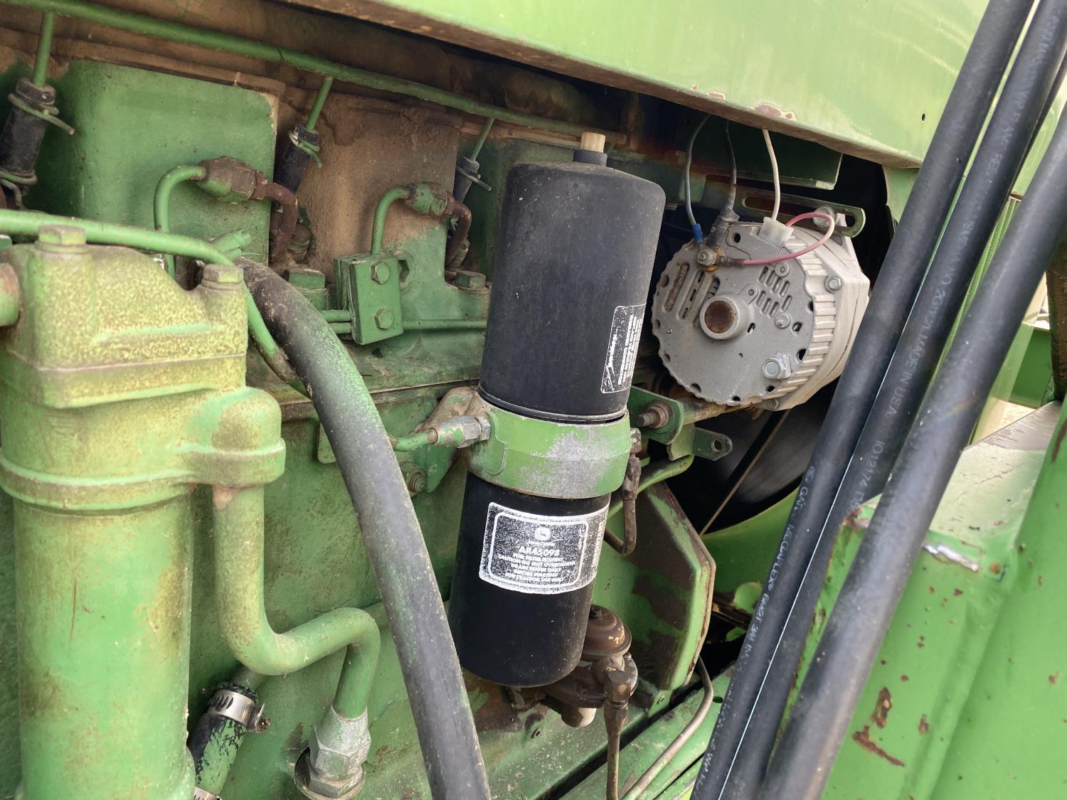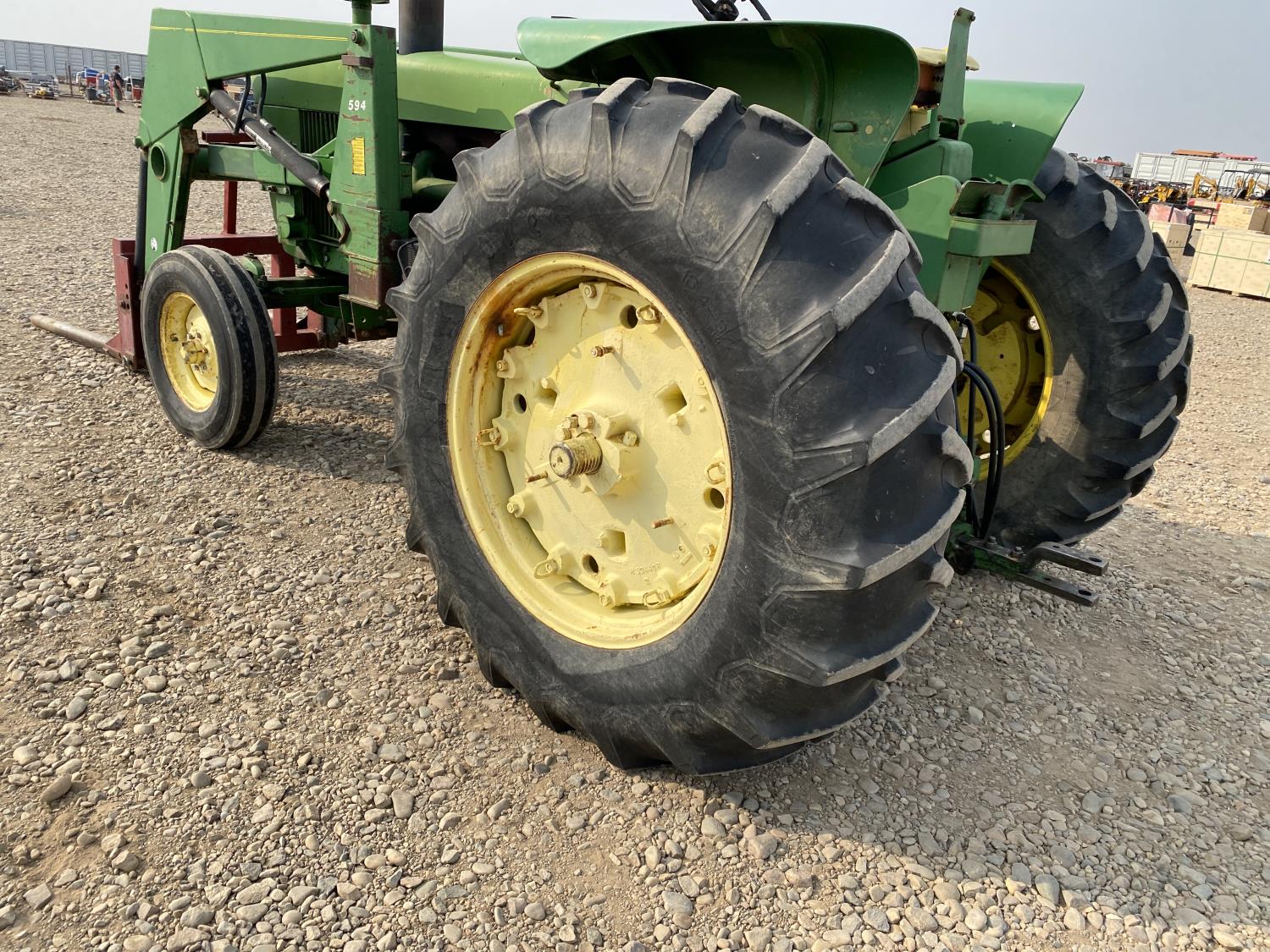 Allied 594 loader, 52 inch bale forks,6.6 L 6 cylinder 101 HP, diesel engine, 95 PTO HP, 8 speed partial synchro transmission, 18 GPM hydraulic pump, open station platform, 540/1000 PTO, 1 rear hydraulic outlets, 7.50-18 front tires, 18-34 rear tires