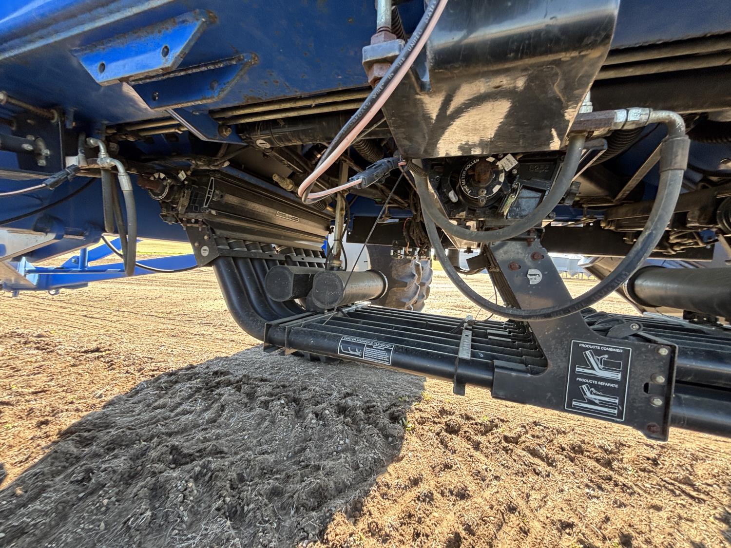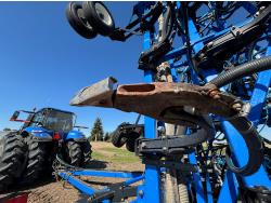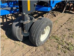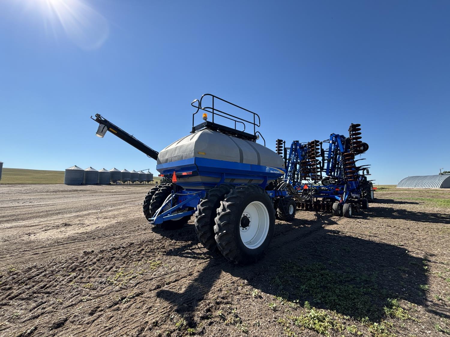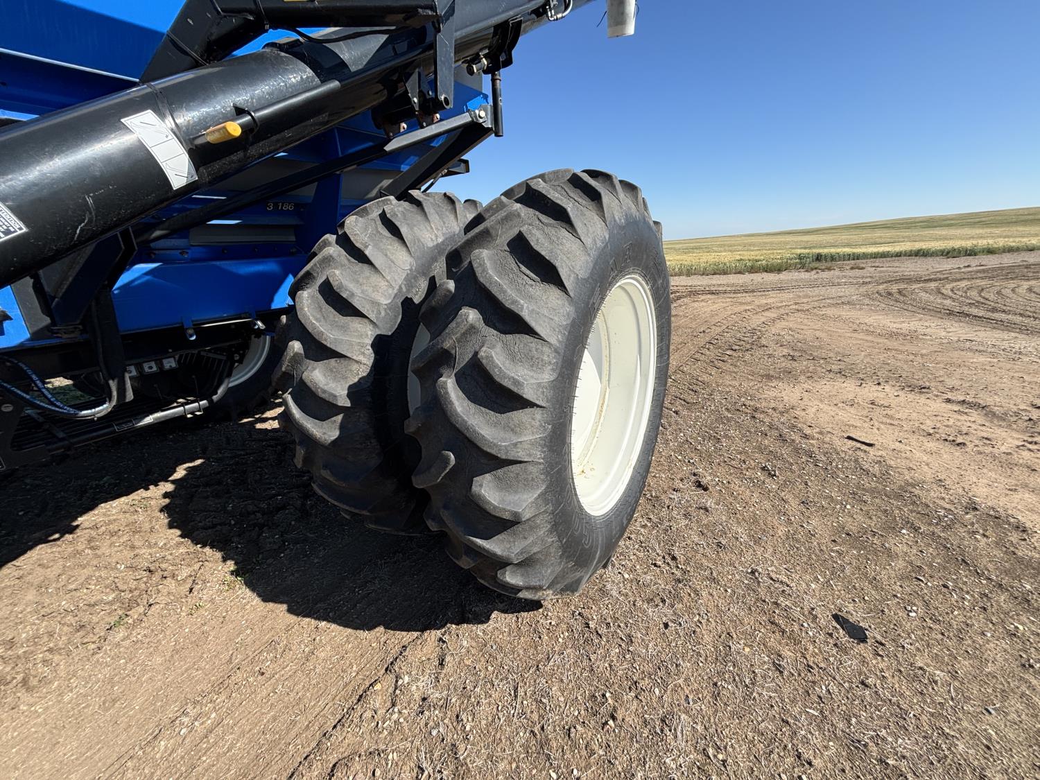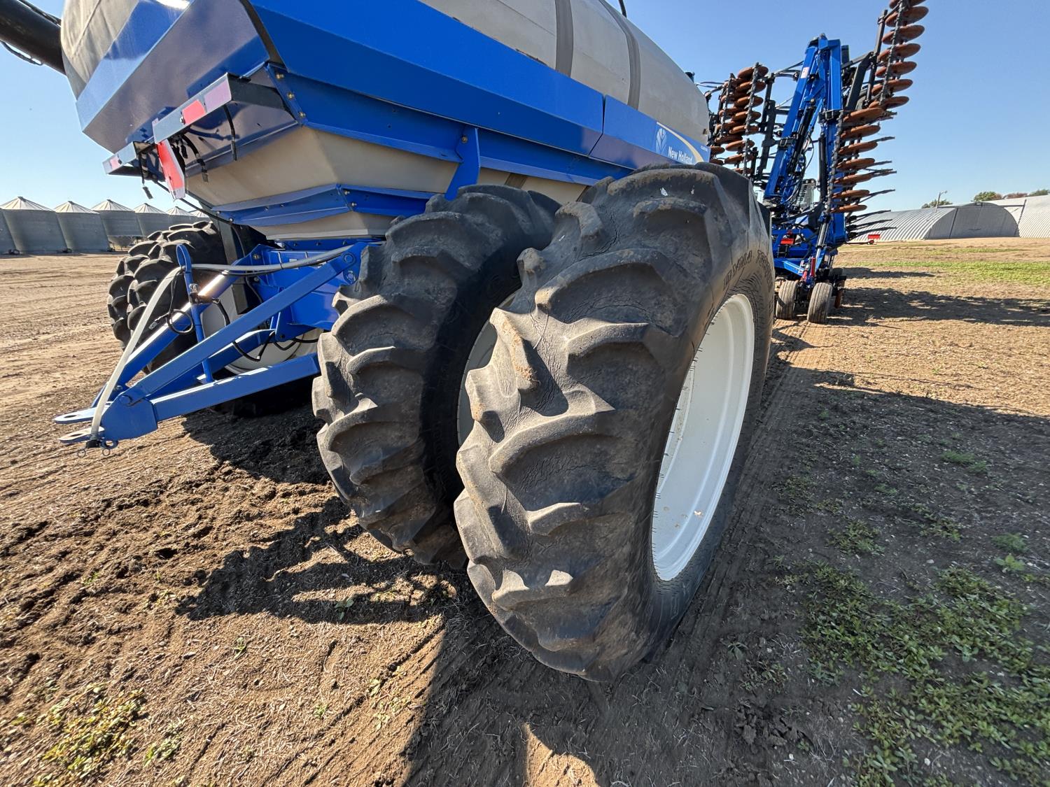 10 inch spacing, single shoot openers, 3 inch steel packers, liquid fertilizer kit, Alpine inoculant injection kit, Air Cart: 3 compartments, loading conveyor, double fan, variable rate metering, 3 tank cameras, New Holland IntelliVision IV display, dual 22.5X16.1 front tires, dual 18.4-38 rear tires