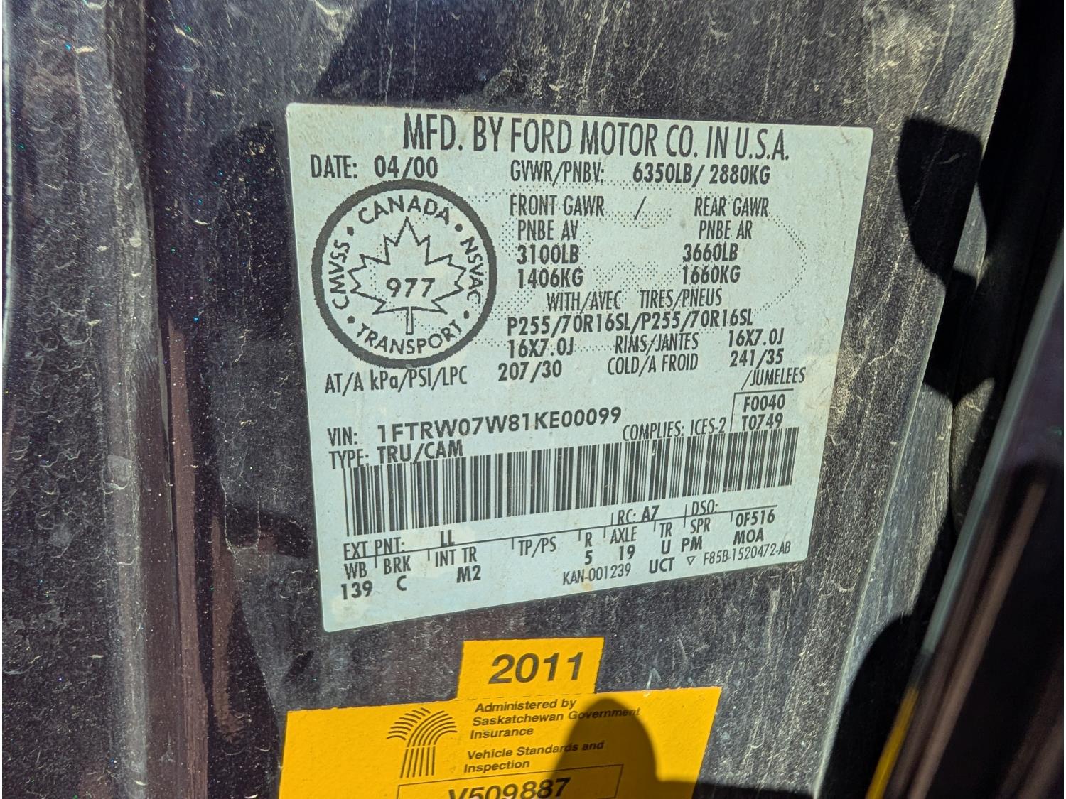 - 1FTRW07W81KE00099