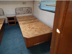 Sleeps 6, stove, fridge, microwave, master bedroom, A/C, 1 slide, manual awning, spring suspension, electric brakes, 225/75R15 tires