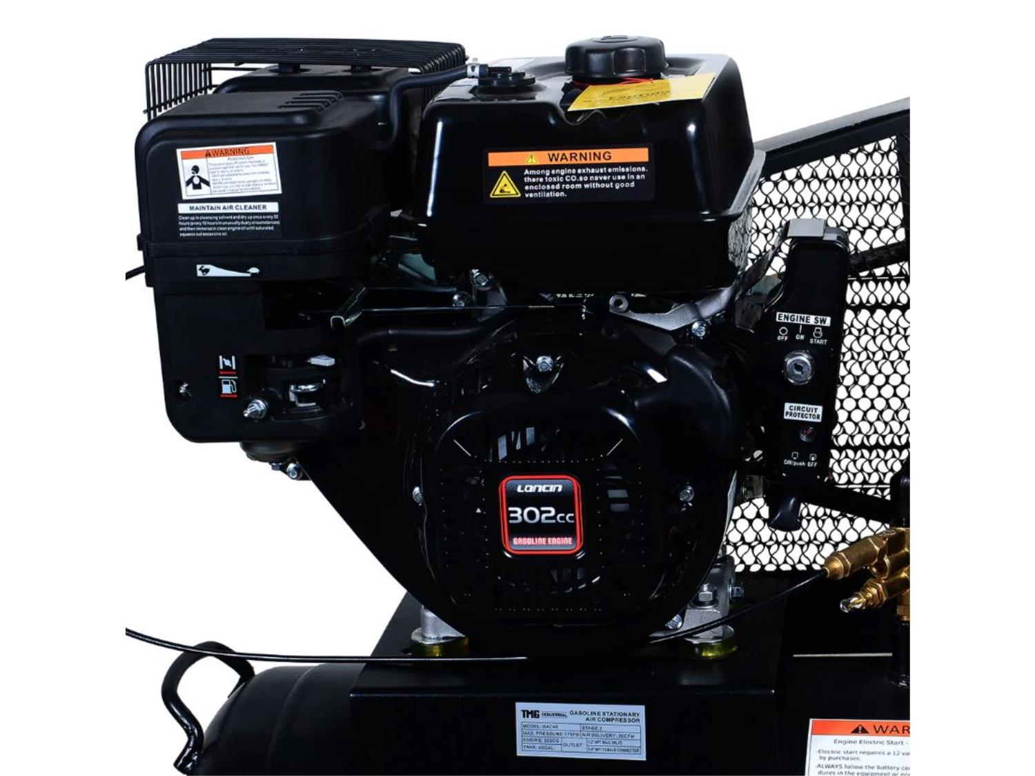 9 HP OHV Loncin engine, horizontal tank, 18.7 CFM @ 90 PSI