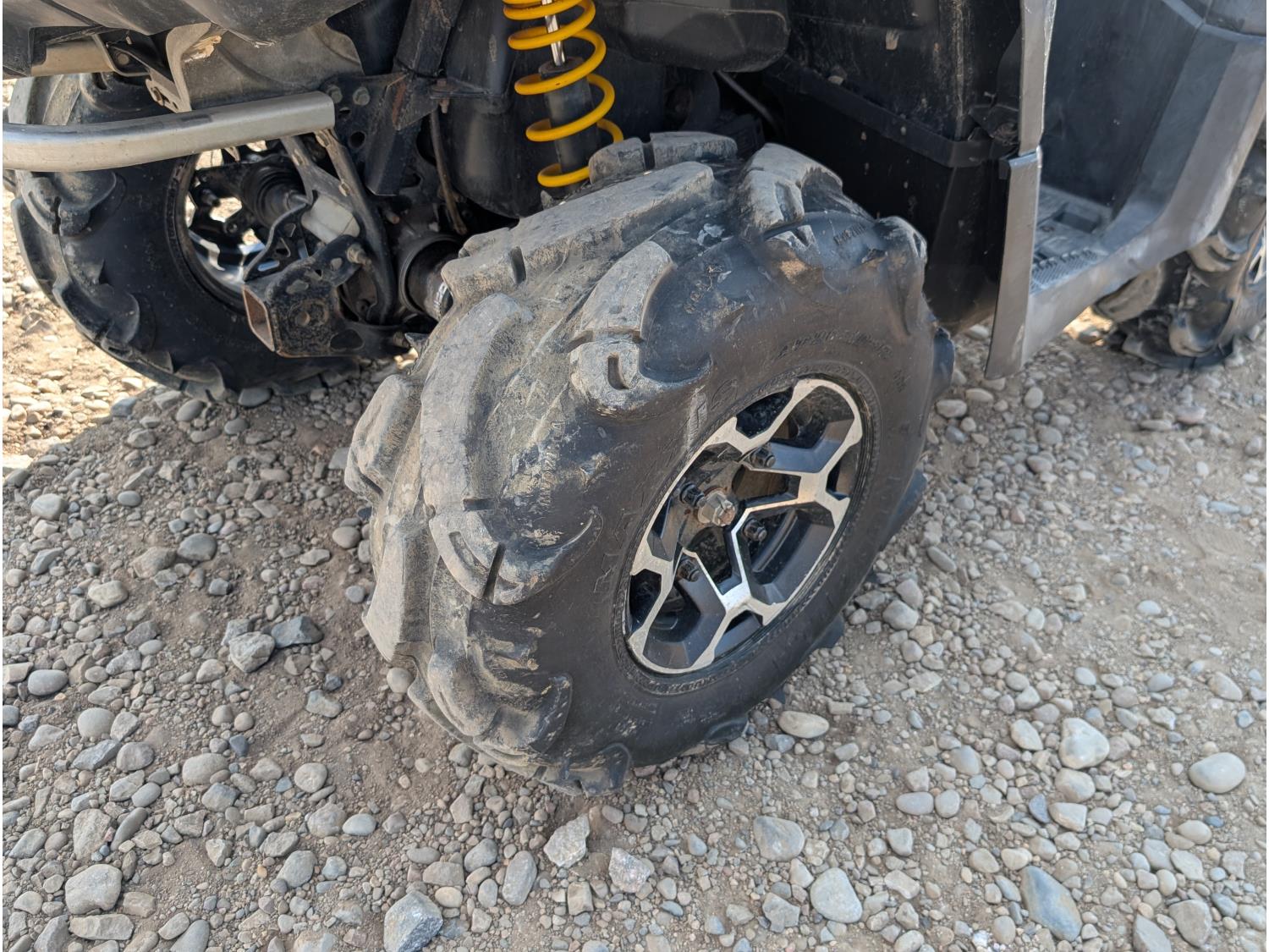 700 cc fuel injected water cooled engine, CVT transmission, Hi/Lo range, reverse, receiver hitch, rear racks, front winch, independent suspension, 28X8-12 front tires, 28X10-12 rear tires