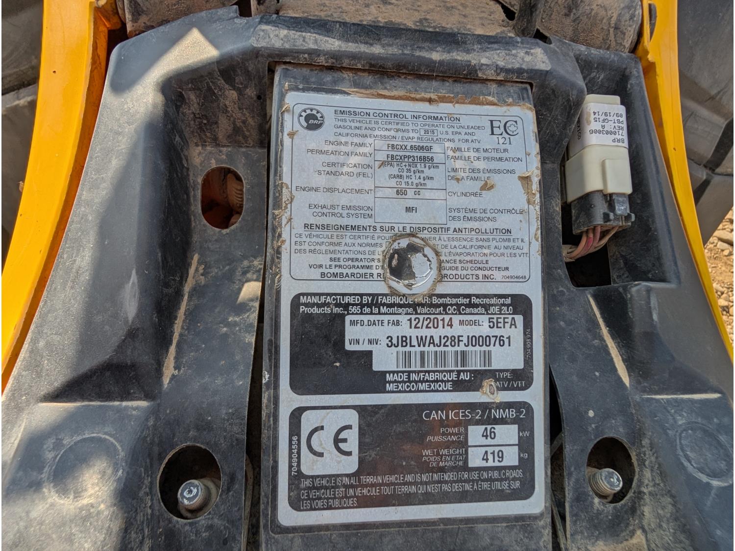 120 2015 Can Am Outlander 4X4 ATV