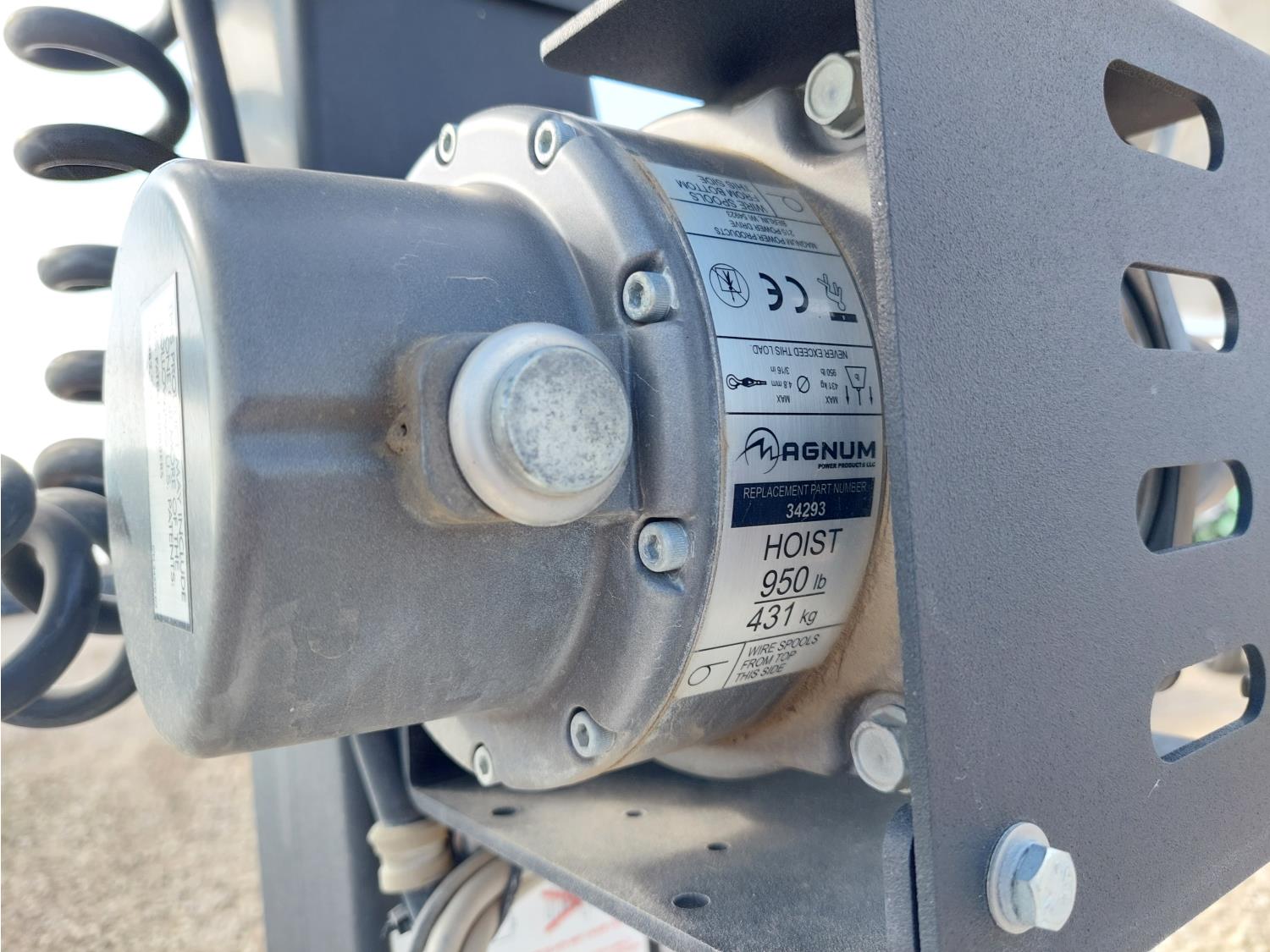 1.0L Mitsubishi diesel engine, 950 lb Magnum hoist, spring suspension, 175/80D13 tires, reversible pintle/ball hitch