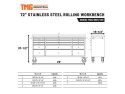 35 StanForge WB7215S 72 Inch 15 Drawer Stainless Steel Rolling Workbench (Unused)