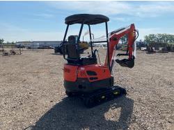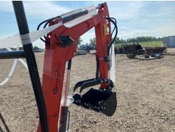 Open station, Kubota D722 3 cylinder diesel engine, 17 inch dig bucket, manual thumb, 2 Ft 10 inch stick, swing boom, aux hydraulics, 43 inch backfill blade, 7 inch rubber tracks