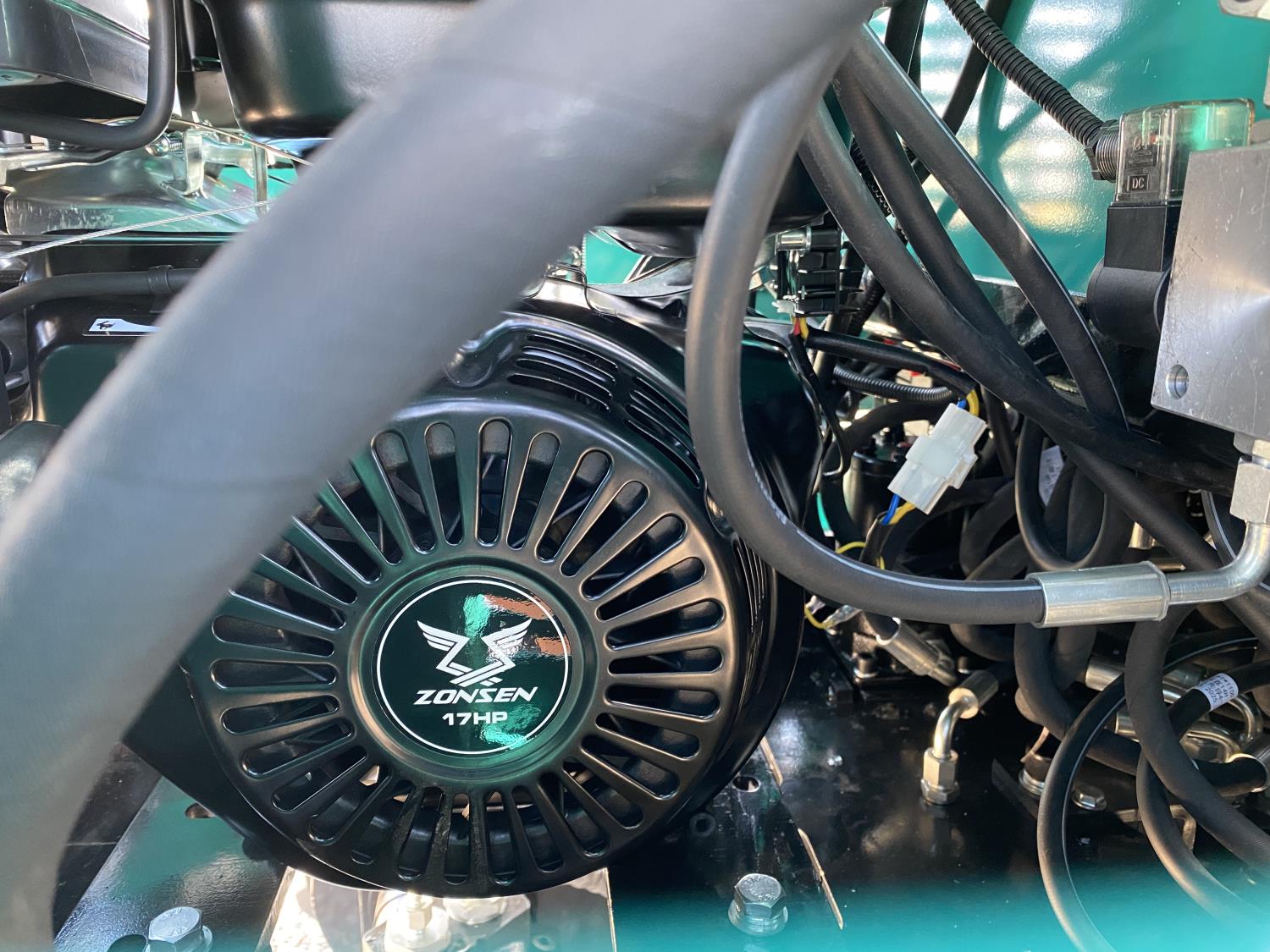Open station, Zonsen 17Hp gas engine, 17 inch dig bucket, manual coupler, manual thumb, 2 Ft 4 inch stick, aux hydraulics, 37 inch backfill blade, 7 inch rubber tracks