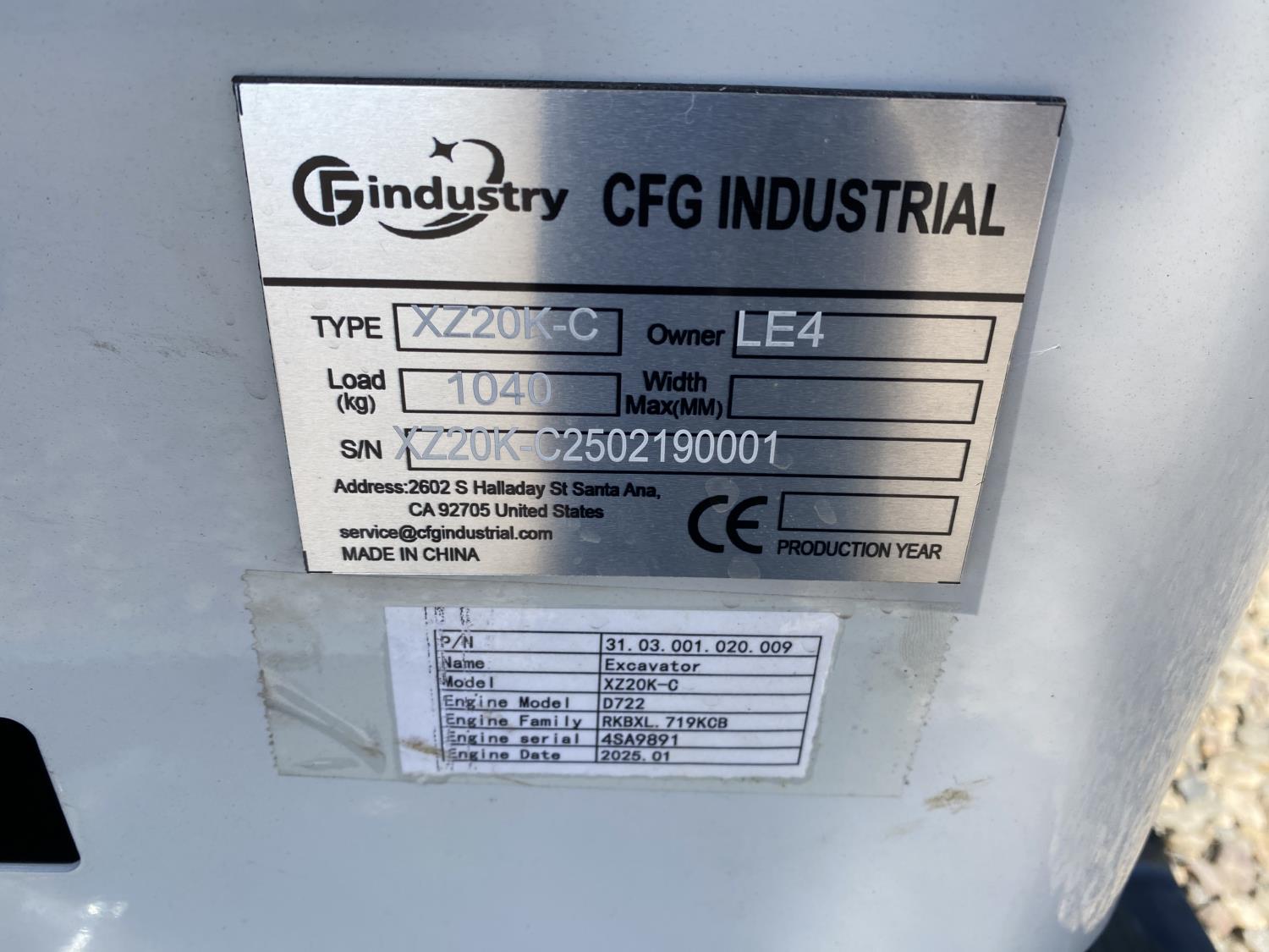 295 2025 CFG XZ20K-C Mini Excavator (Unused)