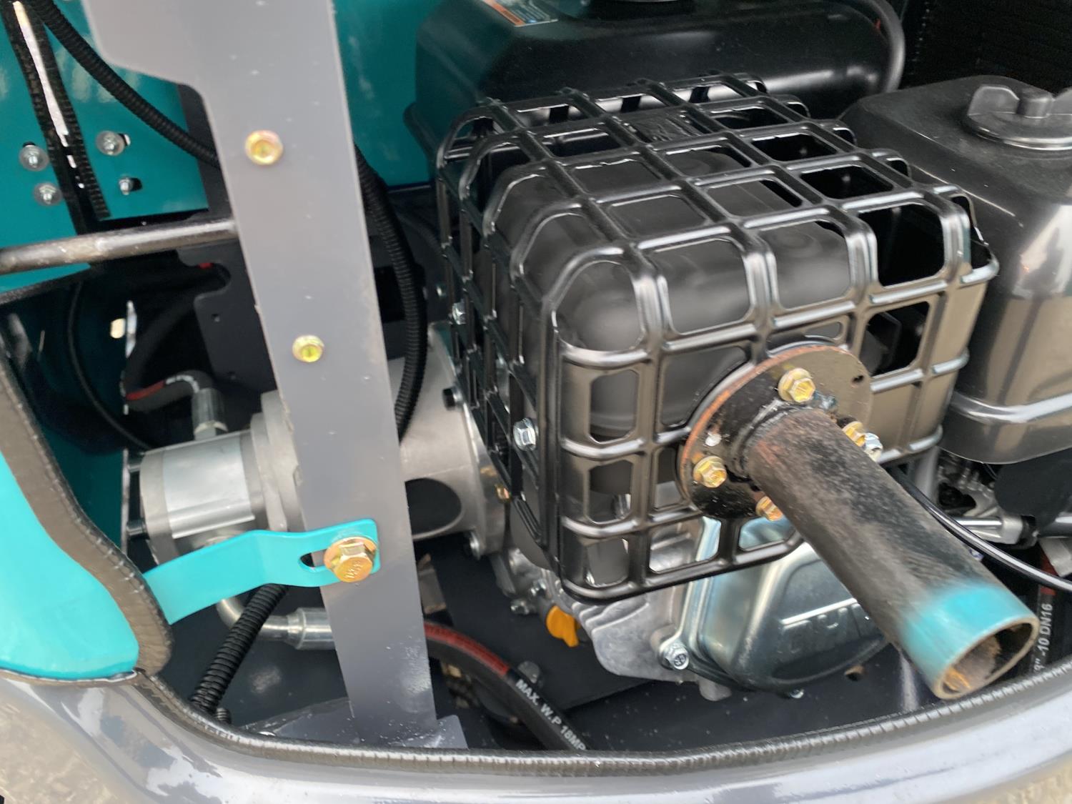 Open station, Zonsen 17Hp gas engine, 17 inch dig bucket, hydraulic thumb, 2 Ft 3 inch stick, auxiliary hydraulics, 39 inch backfill blade, 7 inch rubber tracks