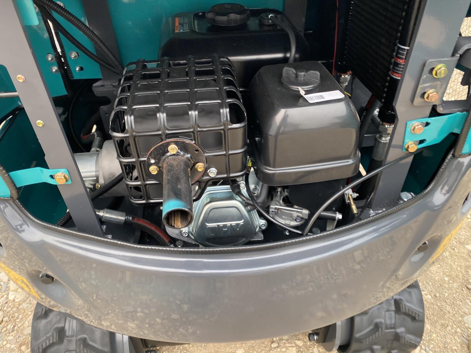Open station, Zonsen 17Hp gas engine, 17 inch dig bucket, hydraulic thumb, 2 Ft 3 inch stick, auxiliary hydraulics, 39 inch backfill blade, 7 inch rubber tracks