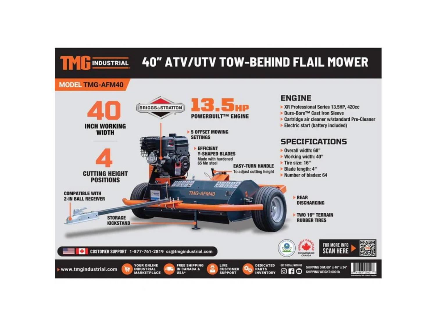 98 StanForge AFM40 ATV/UTV Tow-Behind 40 Inch Flail Mower (Unused)