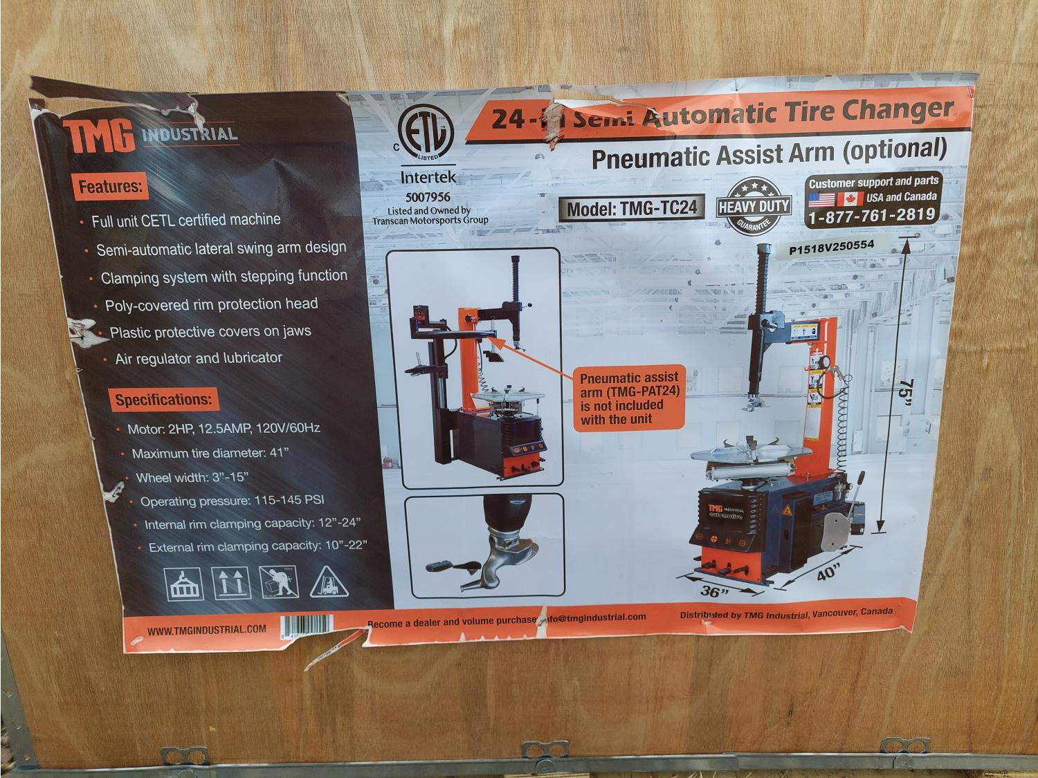 12 inch -24 inch rim clamping capacity, step pedal control, 2 HP motor, certified for Canada/USA