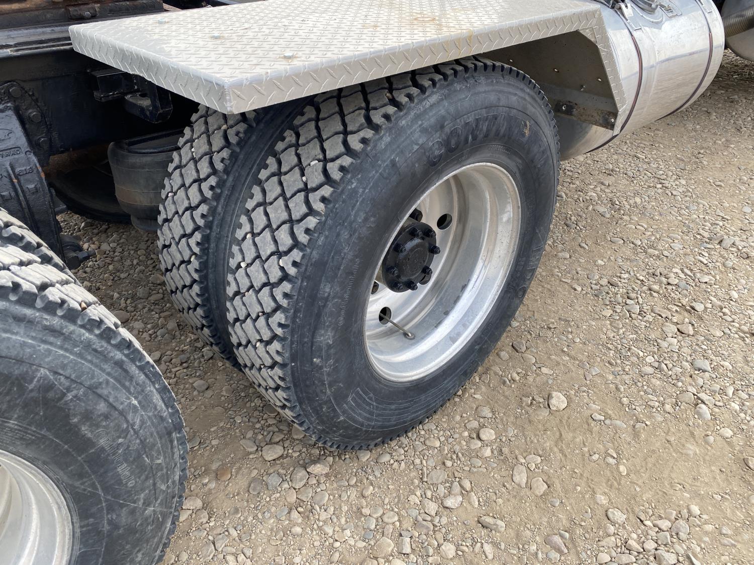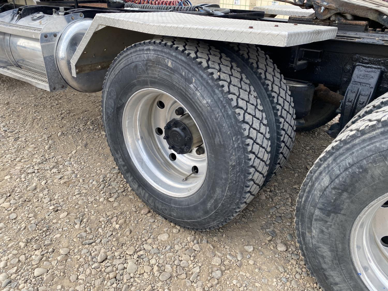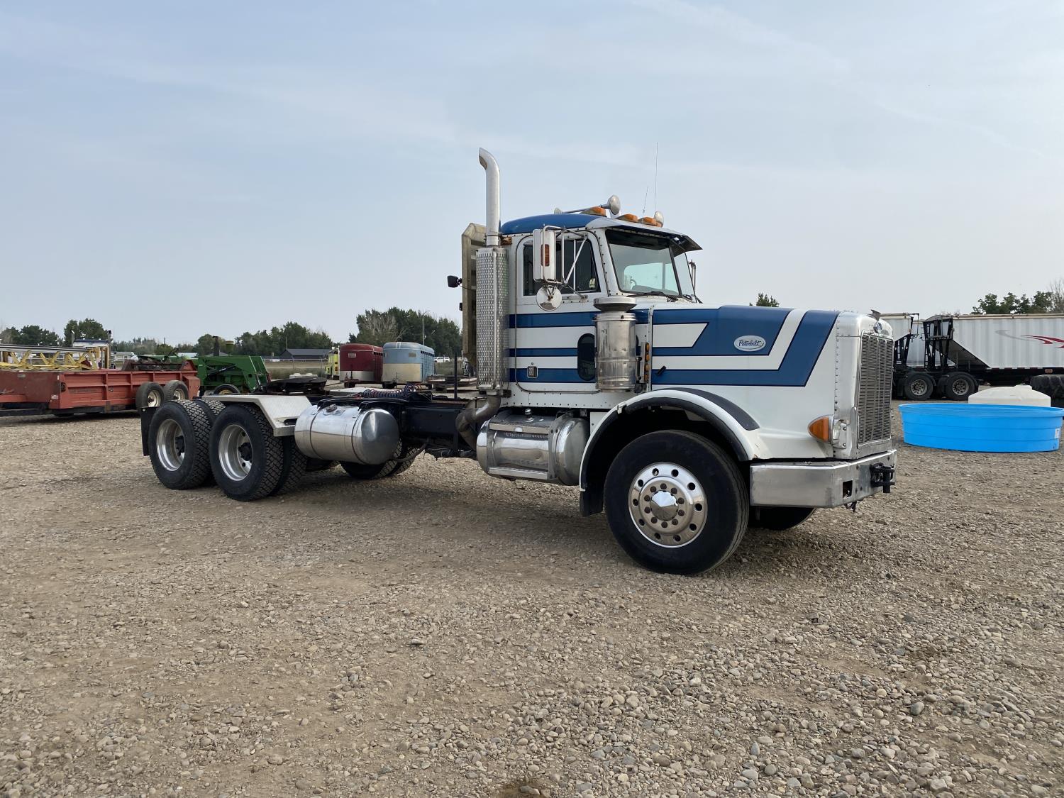 Caterpillar 3406B 14.6 L 6 cylinder 425 HP engine, engine brake, Eaton Fuller 18 speed manual transmission, A/C, cruise control, PTO pump, Peterbilt air ride suspension, 14,600 lb front axle, 46,000 lb rear axles, diff lock, 238 inch WB, all aluminum wheels, 11R24.5 tires