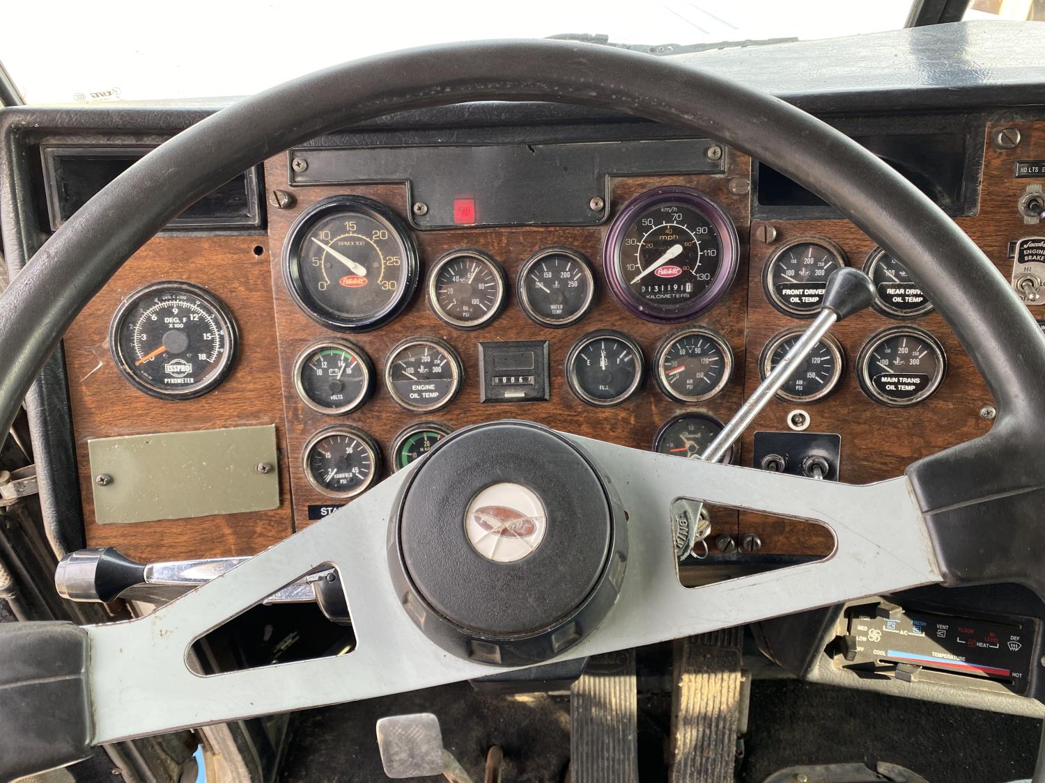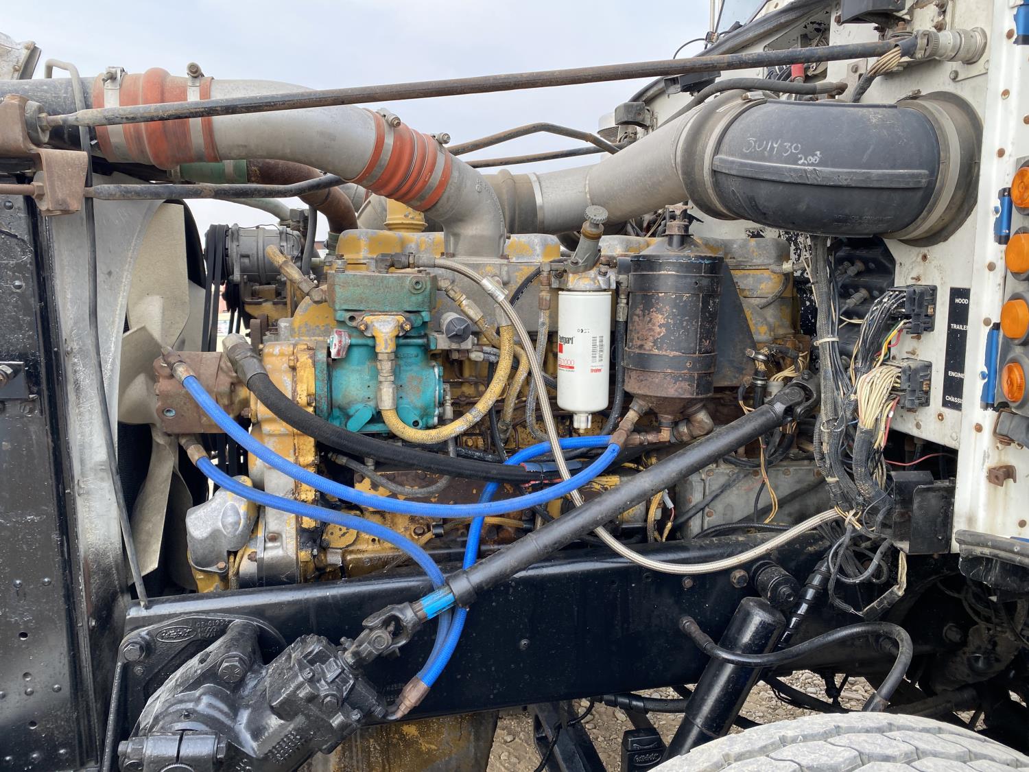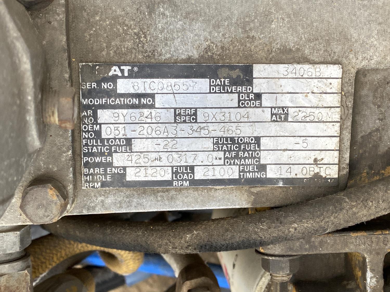 Caterpillar 3406B 14.6 L 6 cylinder 425 HP engine, engine brake, Eaton Fuller 18 speed manual transmission, A/C, cruise control, PTO pump, Peterbilt air ride suspension, 14,600 lb front axle, 46,000 lb rear axles, diff lock, 238 inch WB, all aluminum wheels, 11R24.5 tires