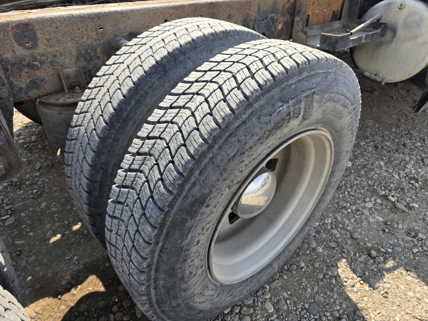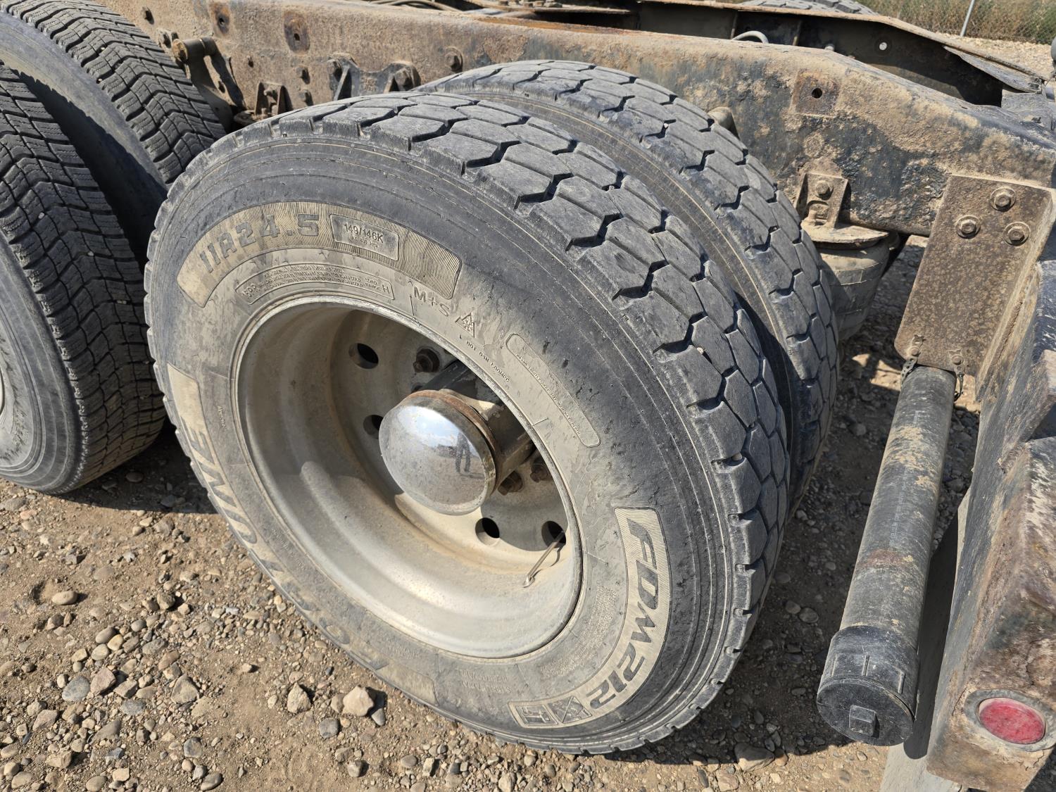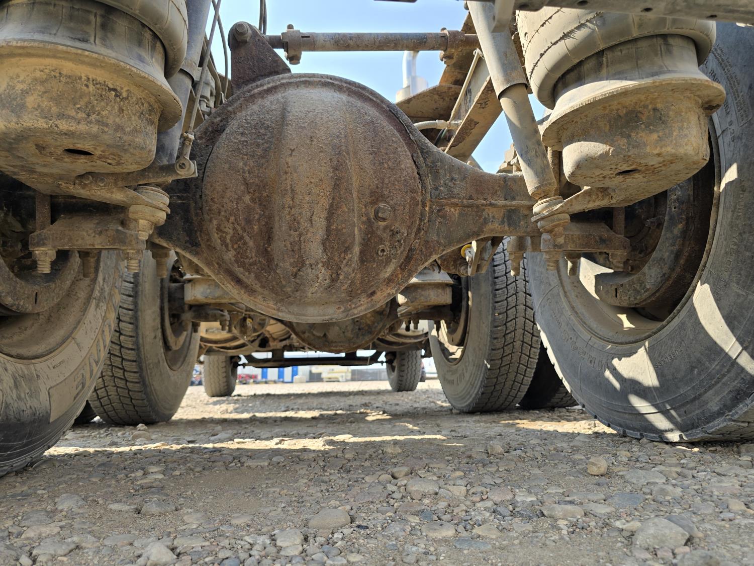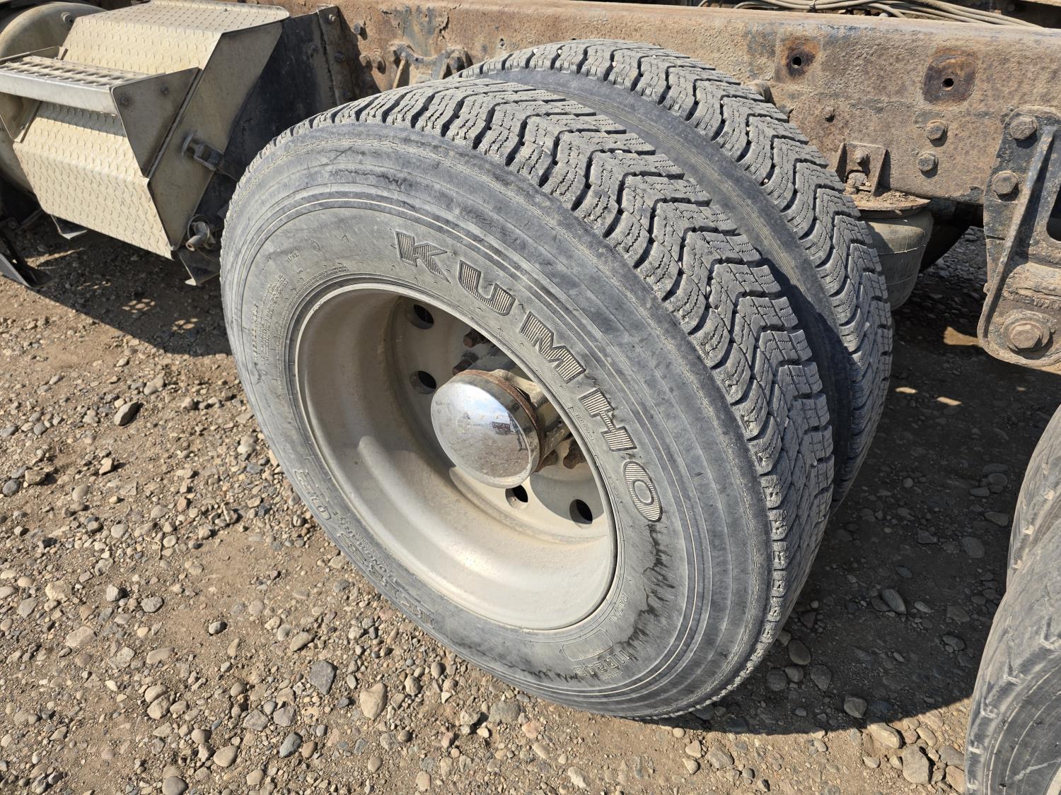 Cummins LTA10 10.0 L 6 cylinder engine, engine block heater, Eaton Fuller RTX 11609B 9 speed manual transmission, A/C, air ride seats, stereo, Neway air ride suspension, 12,000 lb front axle, 38,000 lb rear axles, diff lock, 170 inch WB, all aluminum wheels, 11R24.5 tires