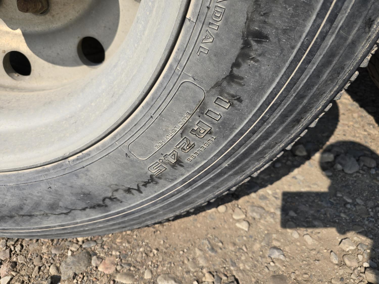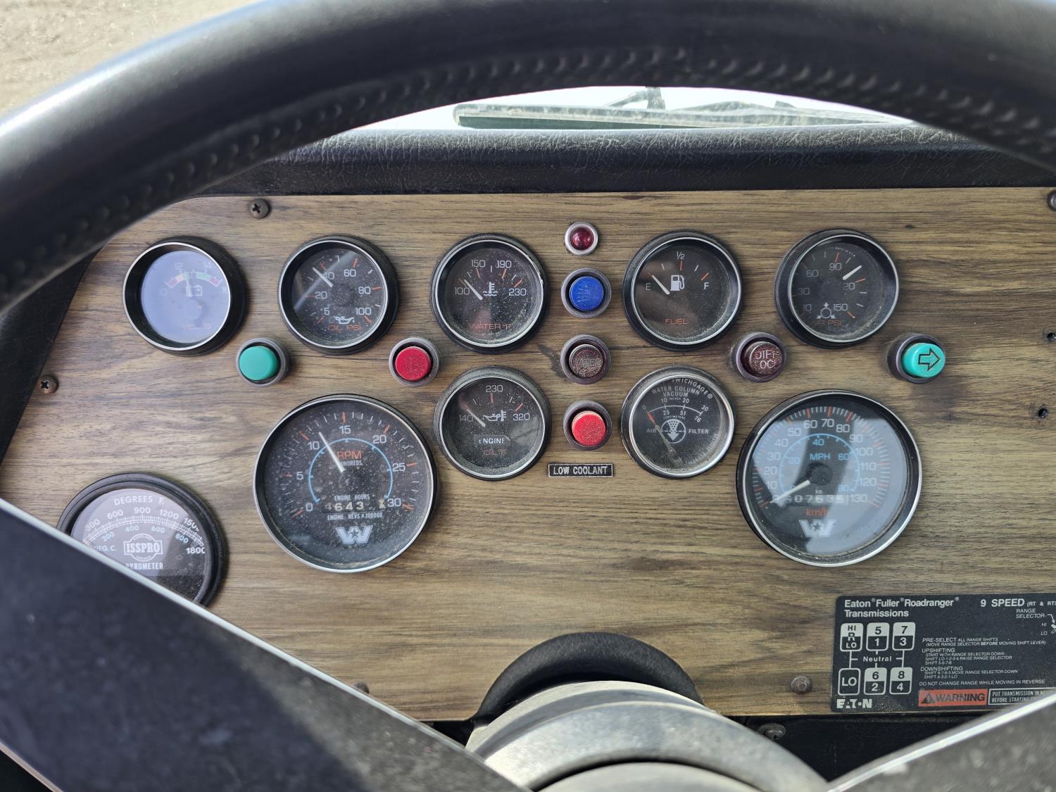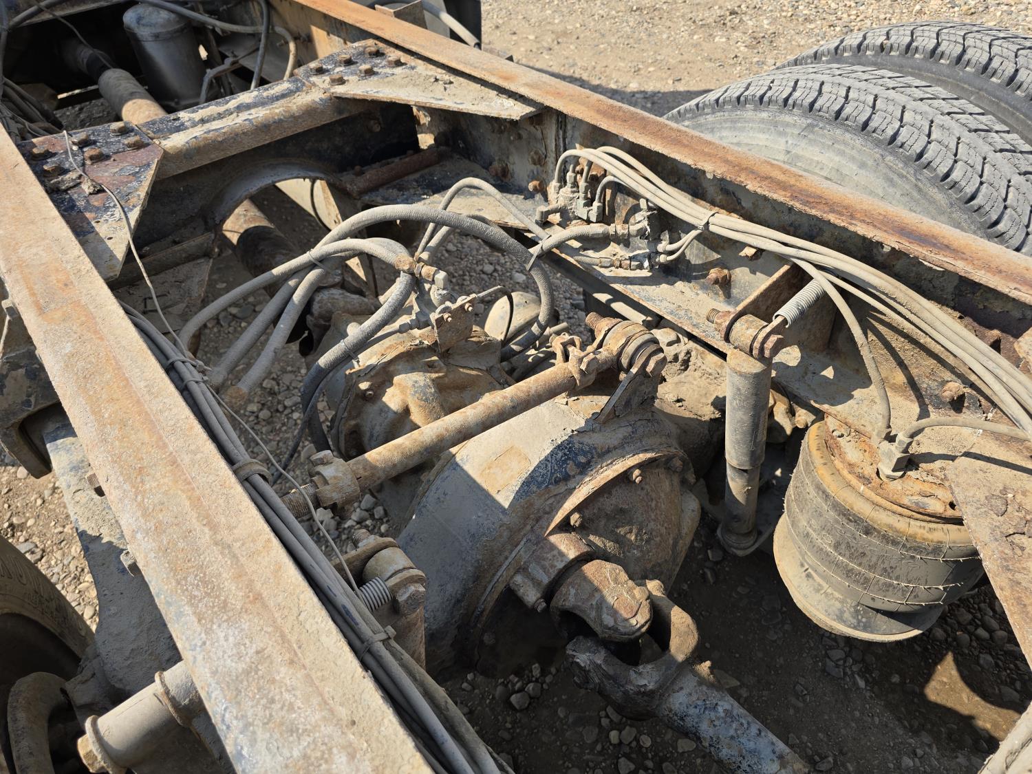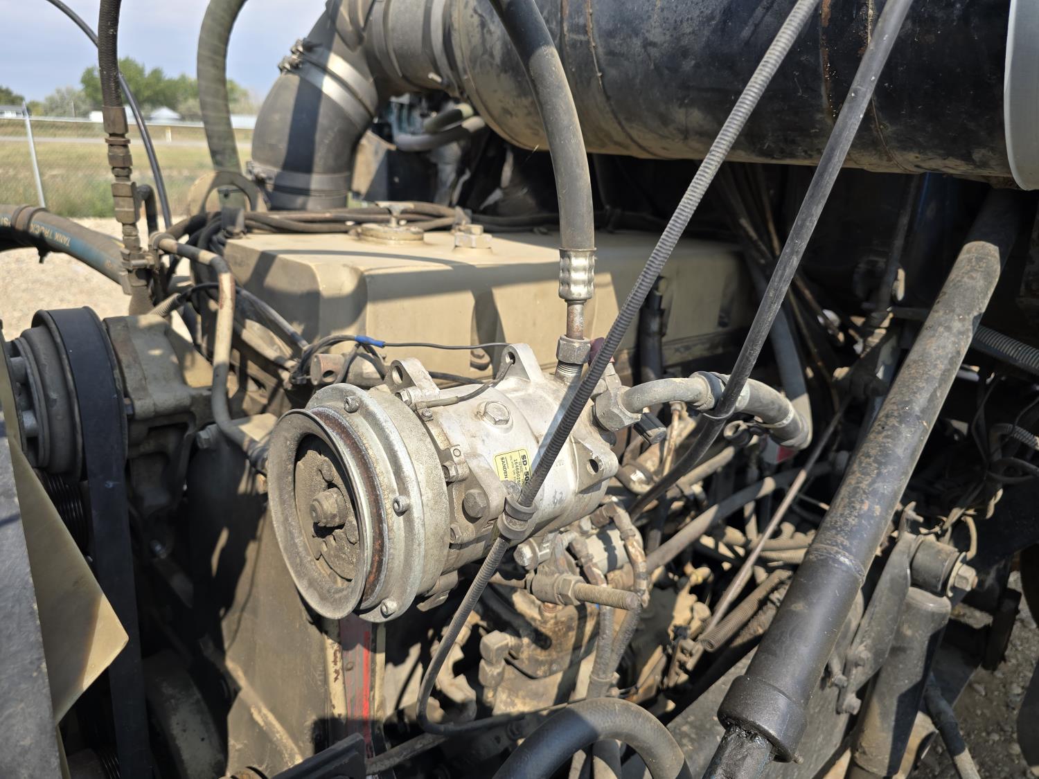 Cummins LTA10 10.0 L 6 cylinder engine, engine block heater, Eaton Fuller RTX 11609B 9 speed manual transmission, A/C, air ride seats, stereo, Neway air ride suspension, 12,000 lb front axle, 38,000 lb rear axles, diff lock, 170 inch WB, all aluminum wheels, 11R24.5 tires