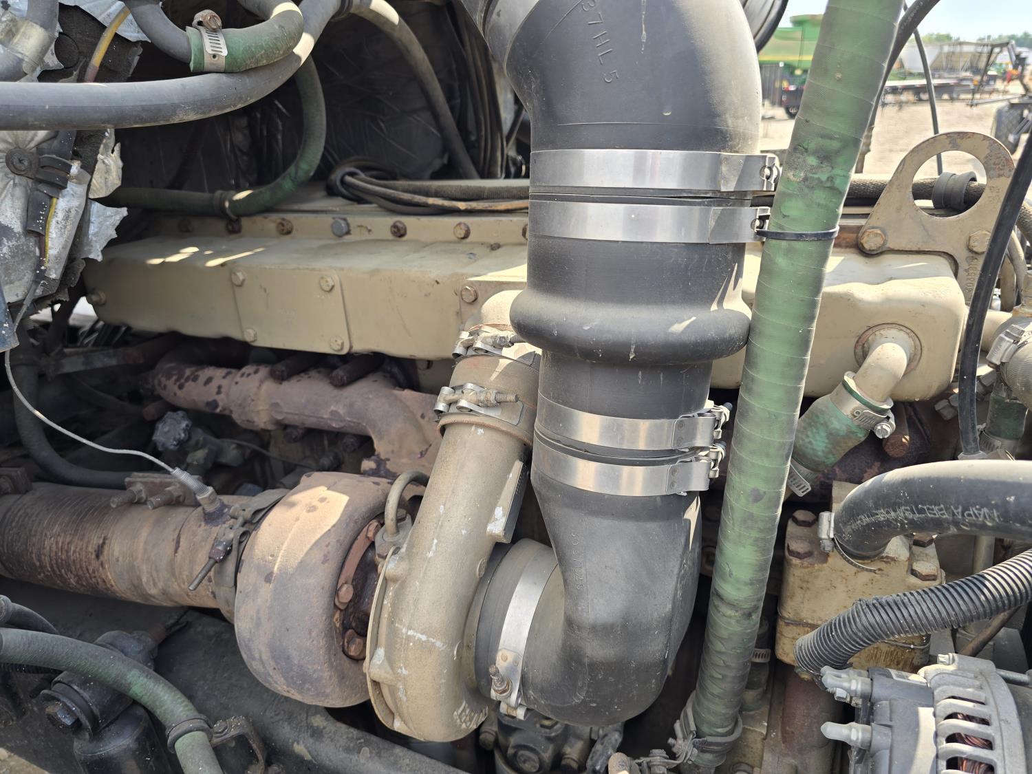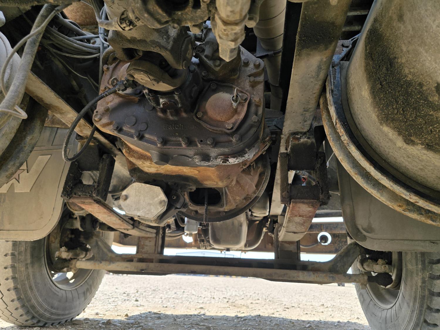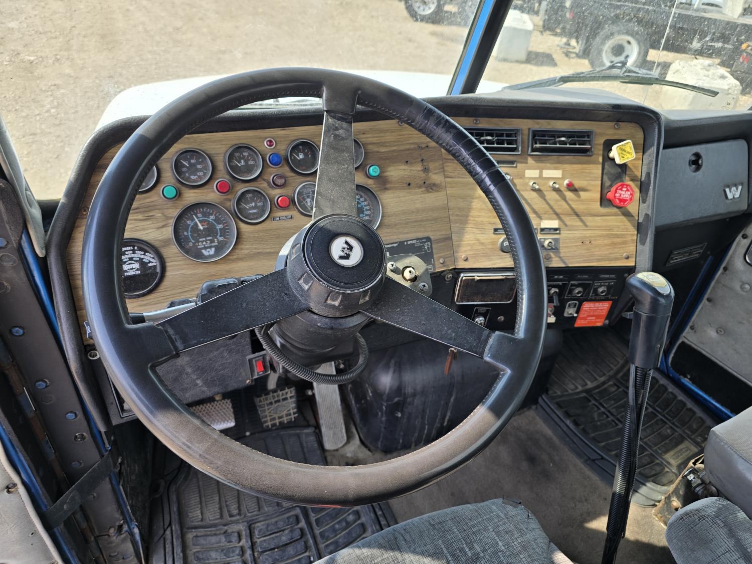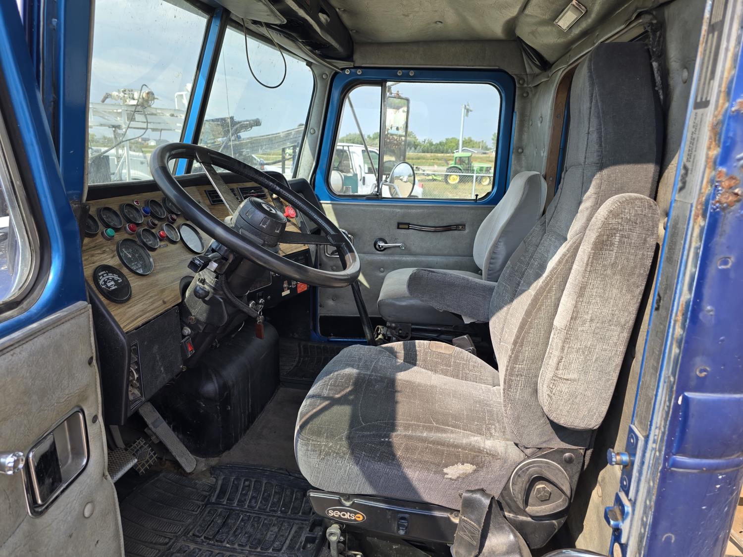 Cummins LTA10 10.0 L 6 cylinder engine, engine block heater, Eaton Fuller RTX 11609B 9 speed manual transmission, A/C, air ride seats, stereo, Neway air ride suspension, 12,000 lb front axle, 38,000 lb rear axles, diff lock, 170 inch WB, all aluminum wheels, 11R24.5 tires