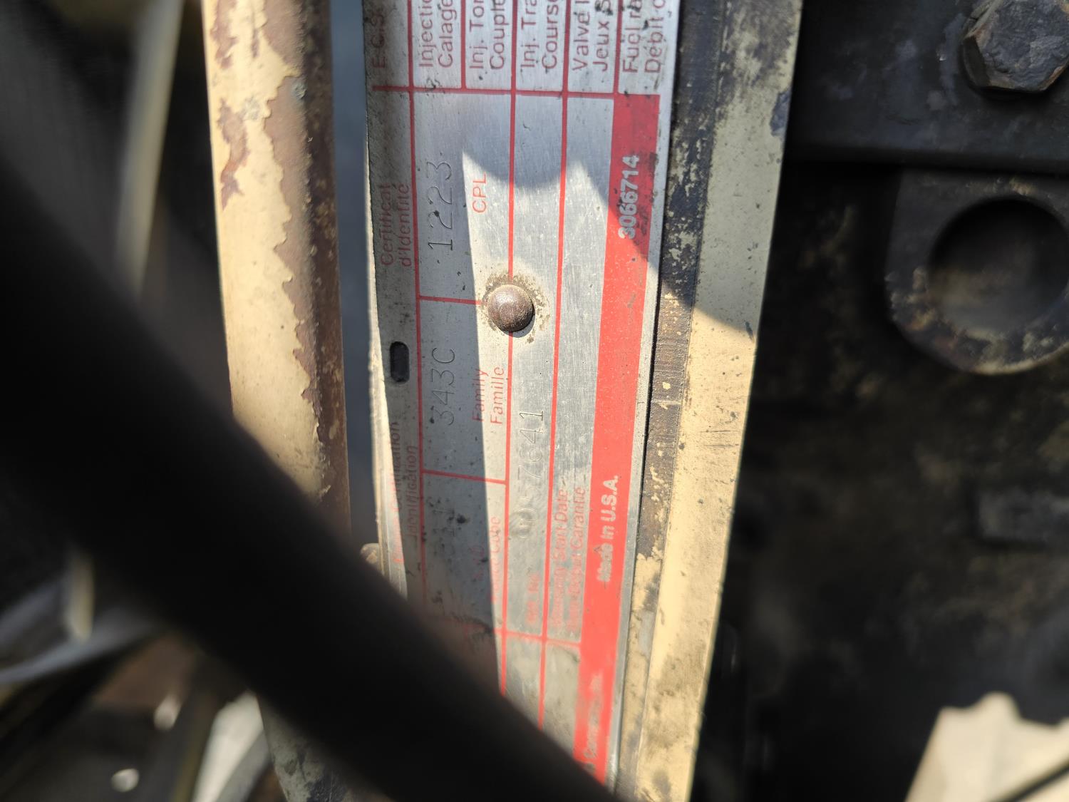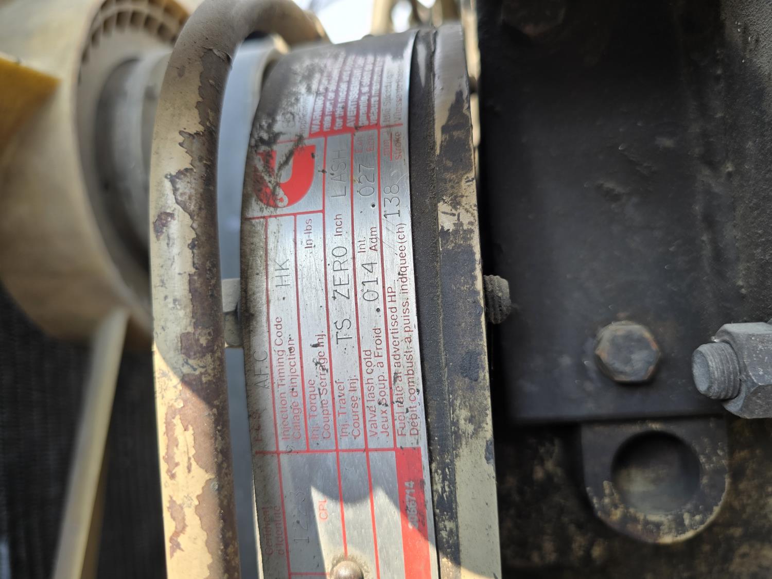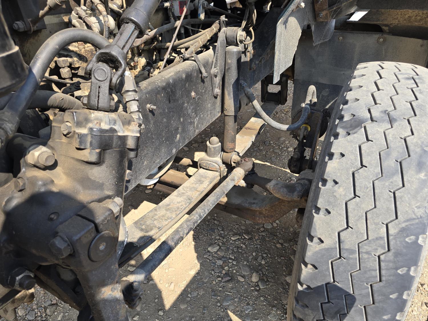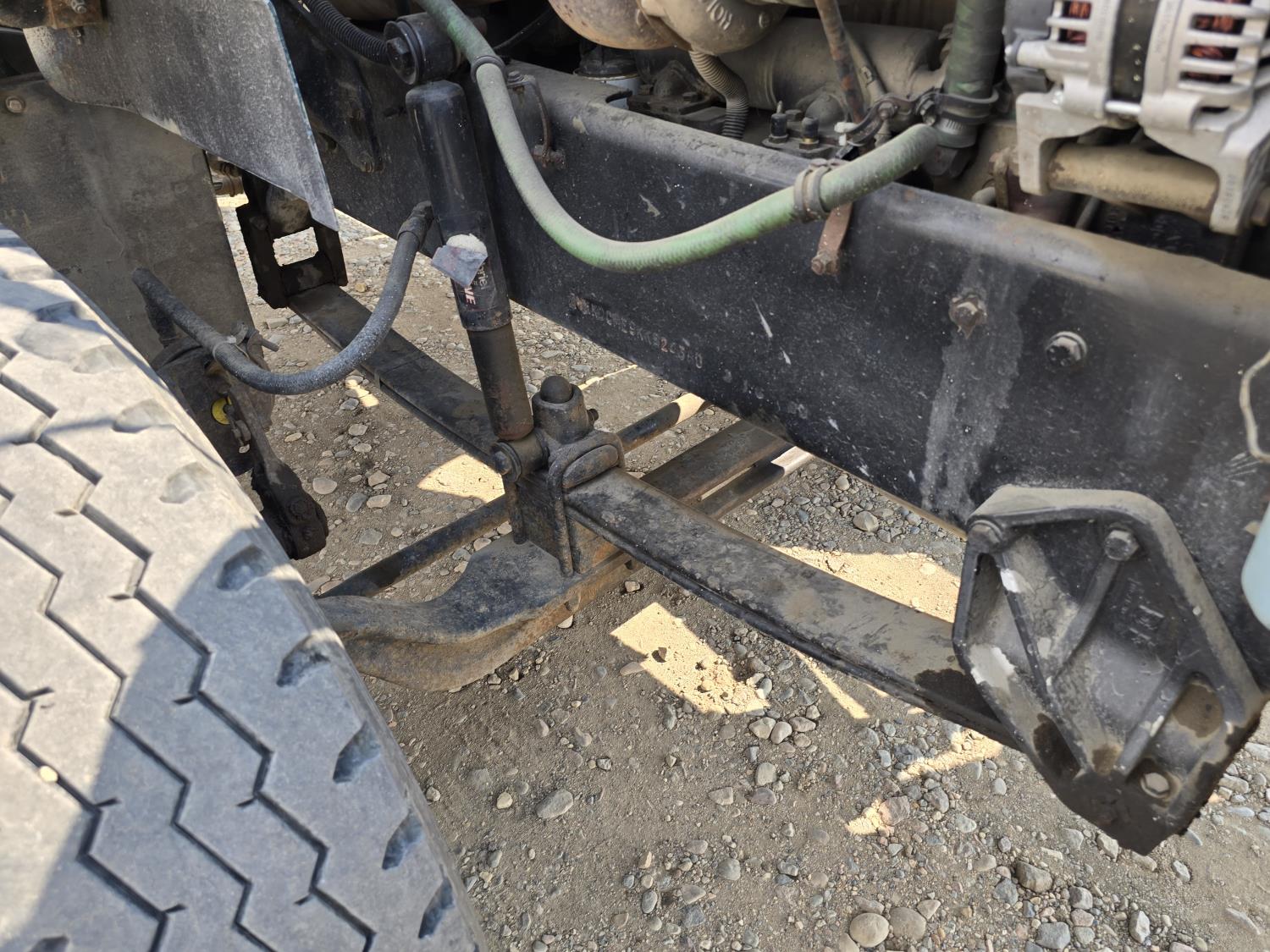 Cummins LTA10 10.0 L 6 cylinder engine, engine block heater, Eaton Fuller RTX 11609B 9 speed manual transmission, A/C, air ride seats, stereo, Neway air ride suspension, 12,000 lb front axle, 38,000 lb rear axles, diff lock, 170 inch WB, all aluminum wheels, 11R24.5 tires