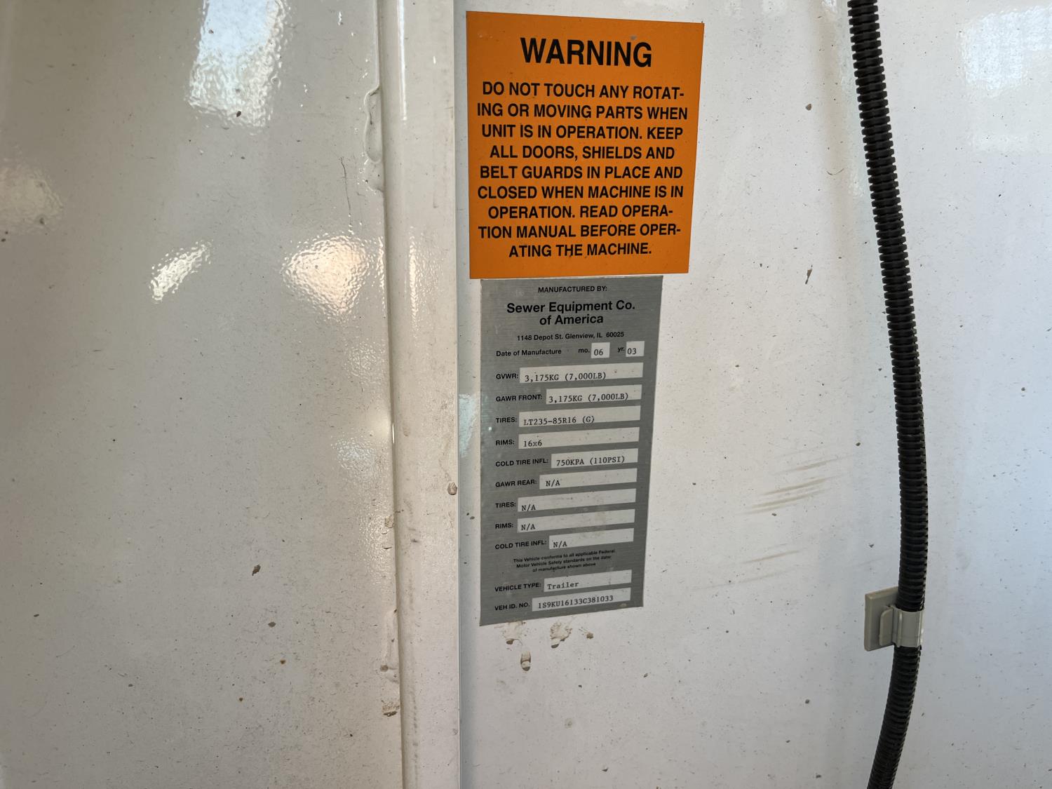 61 2003 Sewer Equipment Co of America 747-PE Trailer Jet