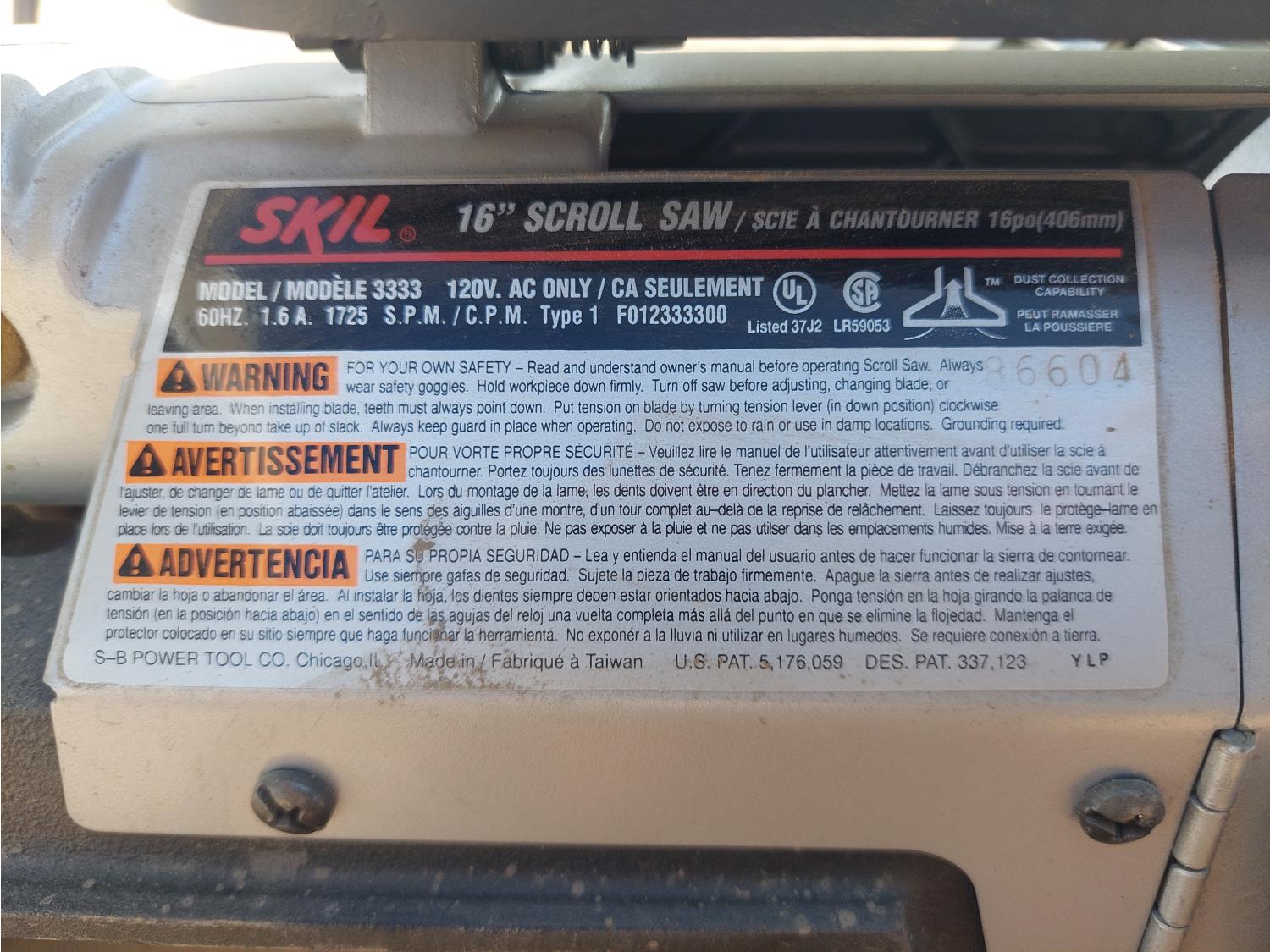 1186 Skil 3333 16 Inch Scroll Saw