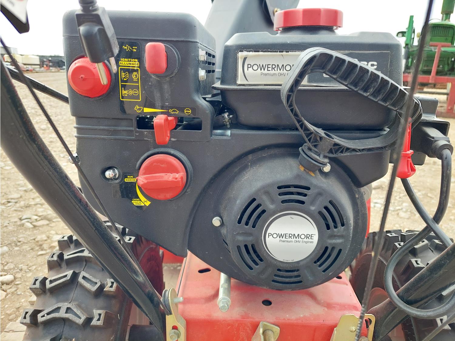 208 cc Powermore gas engine, electric start, 5 forward and 2 reverse speeds, 15x5.00-6 tires