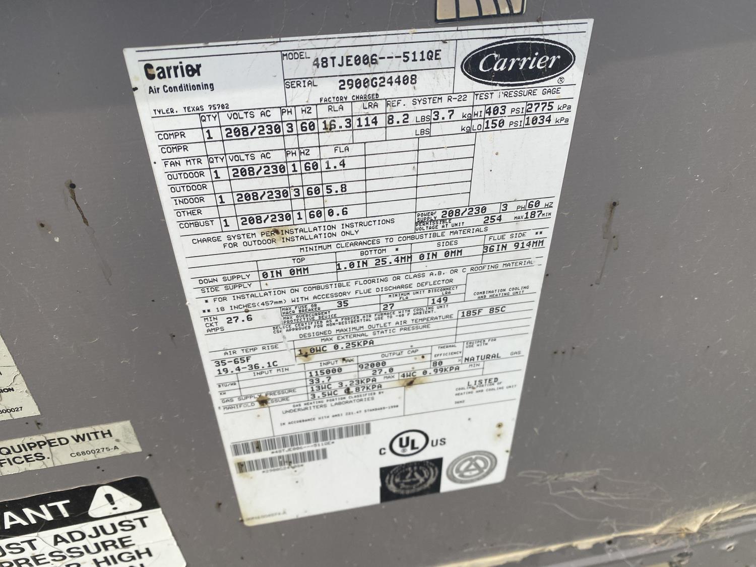 1418 Carrier 48TJE006-511QE 92,000 BTU Air Conditioning Unit