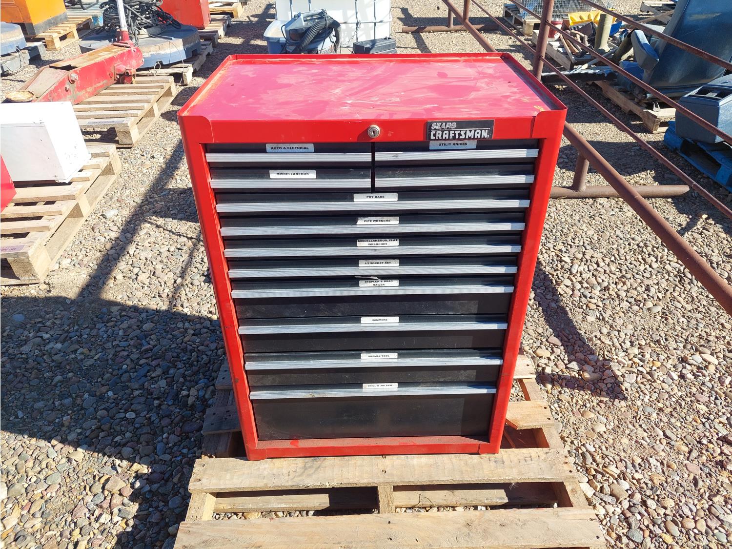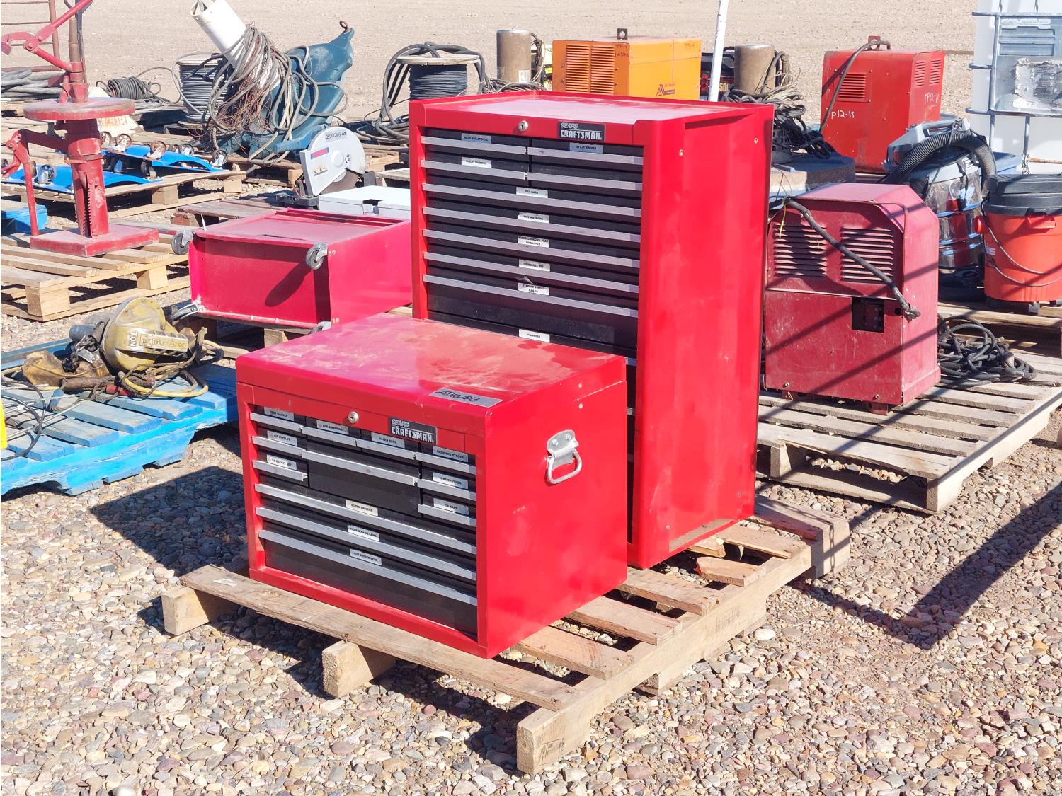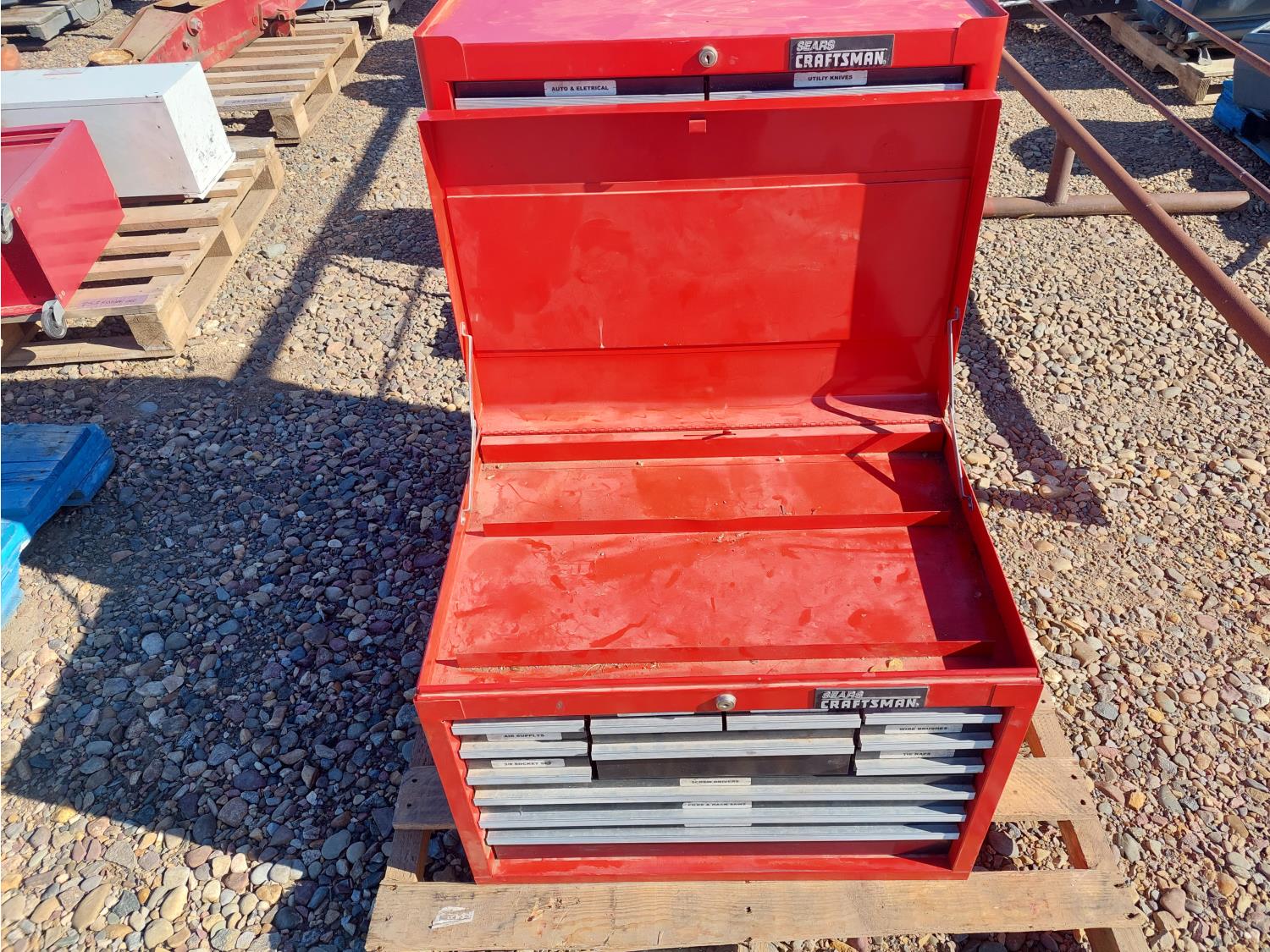 includes miscellaneous tools, bottom box 27 inch W x 18 inch L x 37 inch T, top box 27 inch W x 18 inch L x 19 inch T