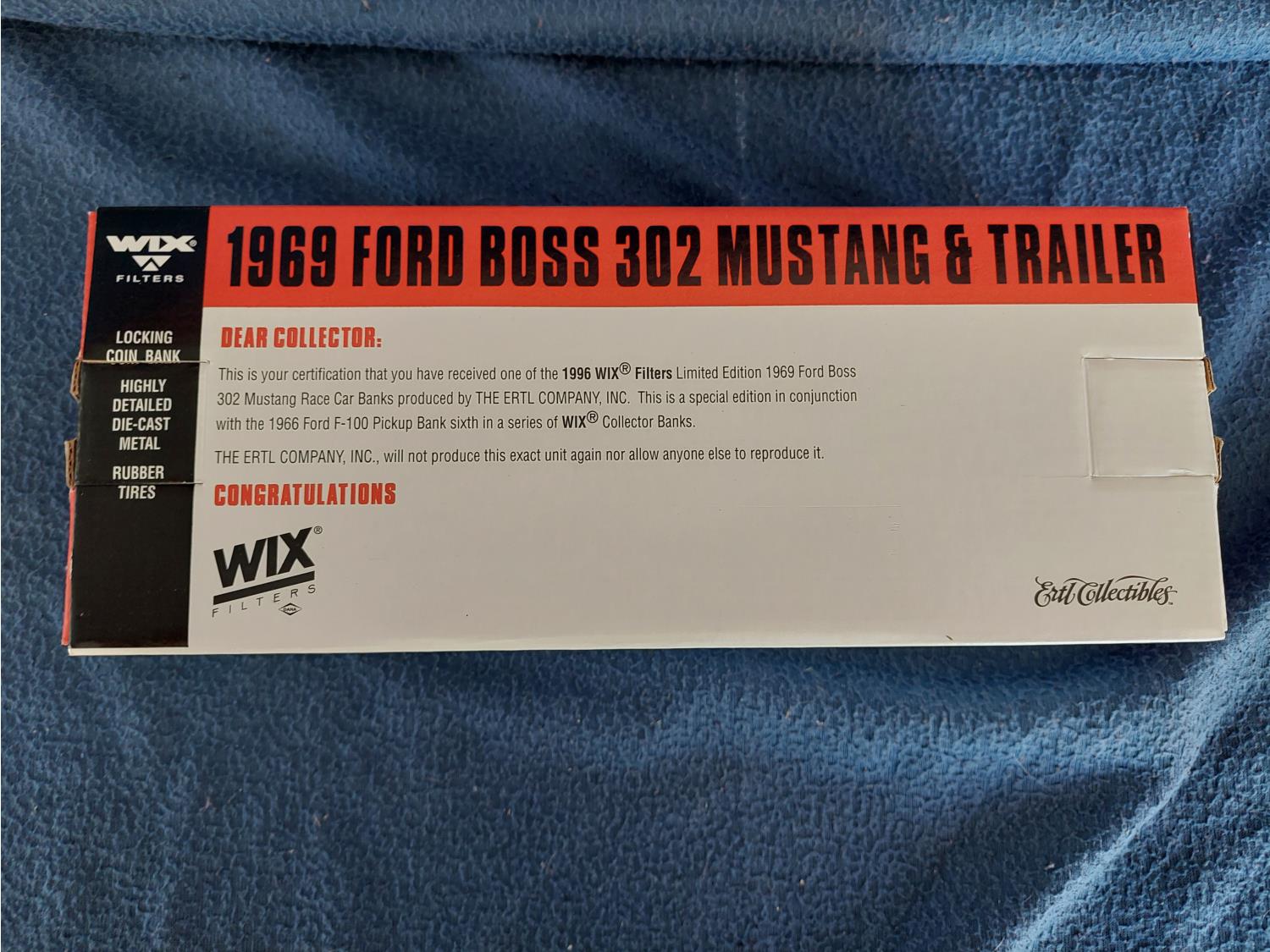1510 Ertl Collectibles Die-Cast 1969 Wix Filters Ford Boss 302 Mustang & Trailer Coin Bank (New in Box)