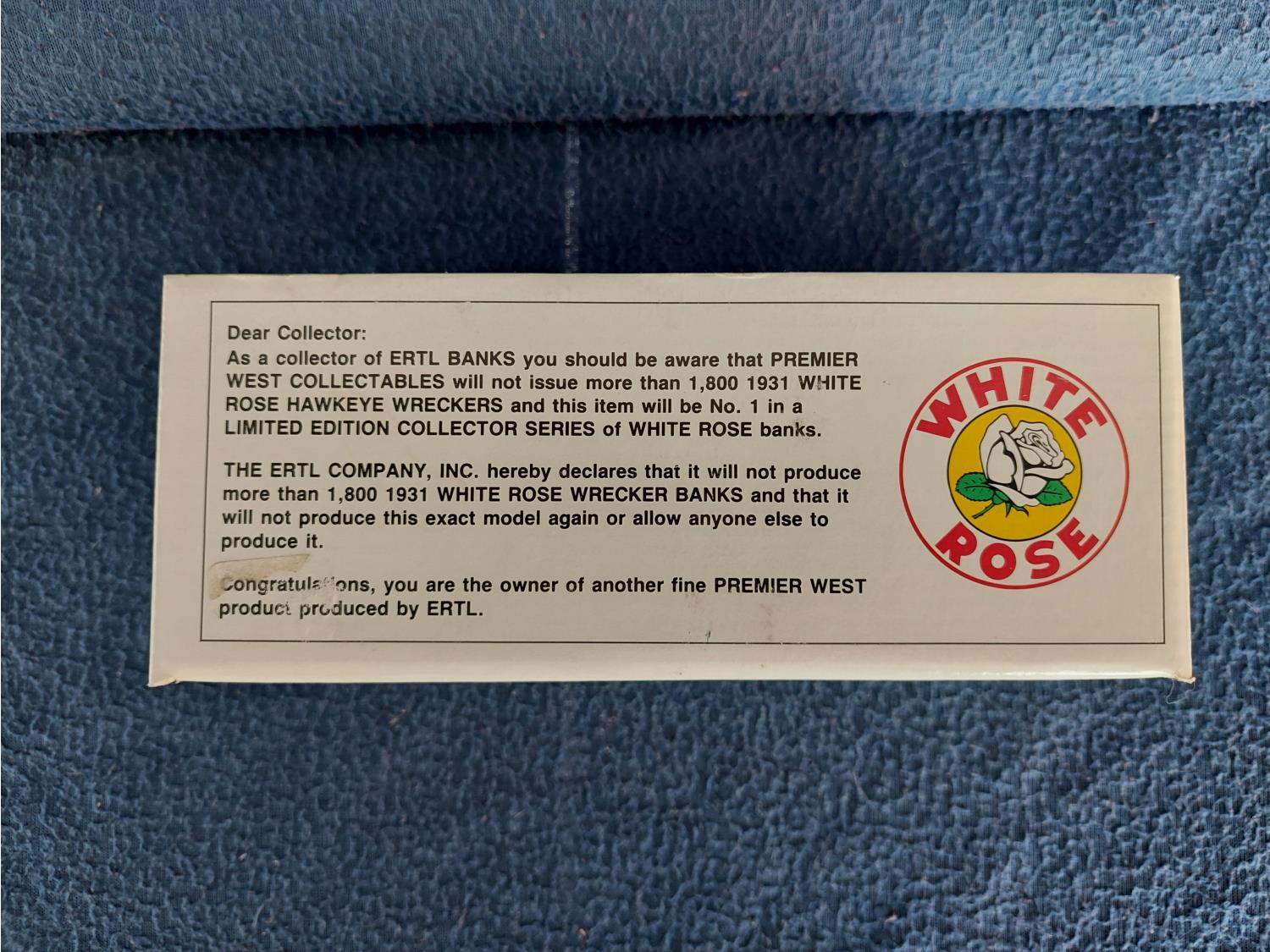 1483 Ertl Collectibles 1931 White Rose Hawkeye Wrecker Coin Bank (New in Box)