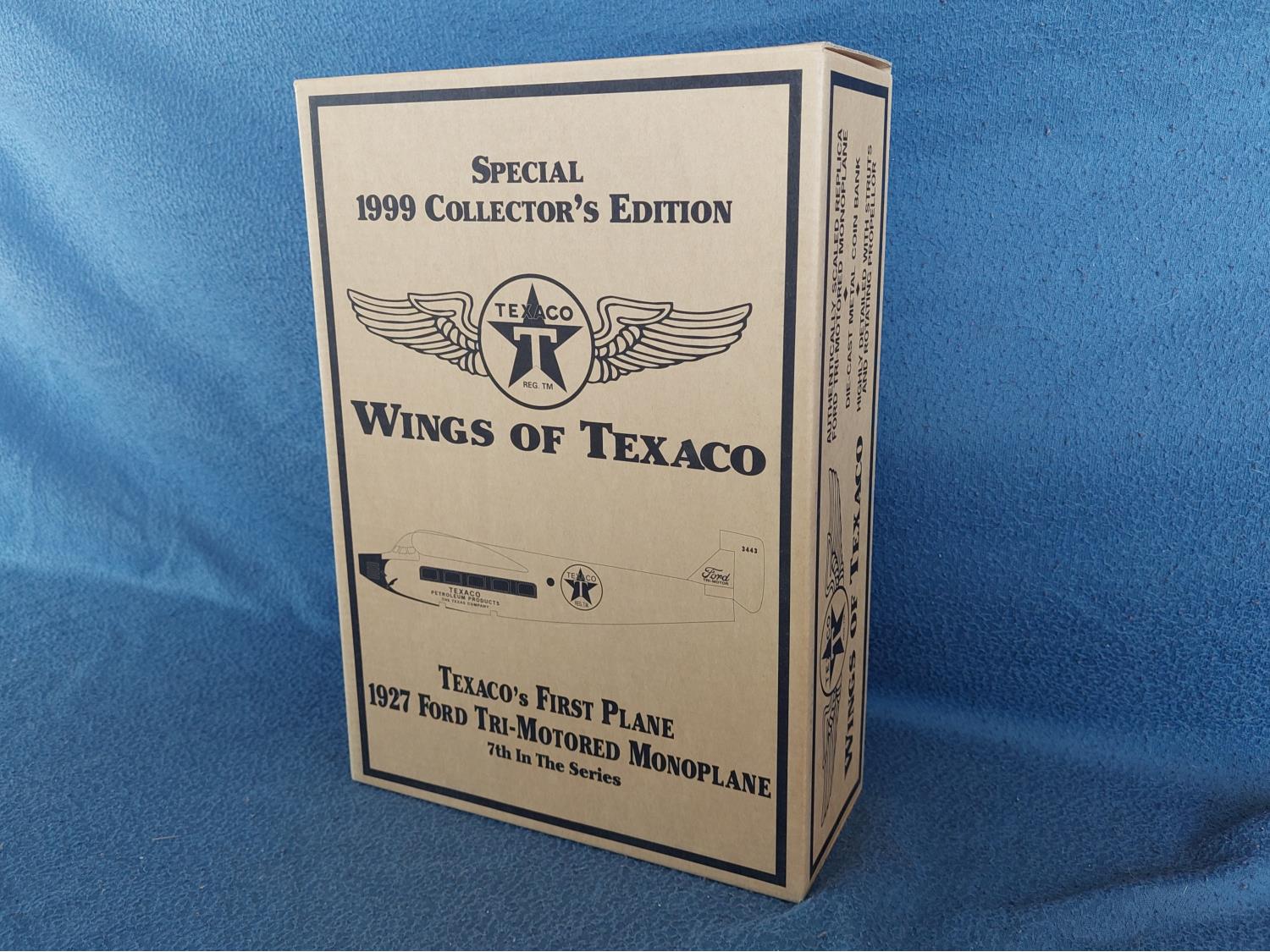 1564 Ertl Die-Cast 1927 Wings of Texaco Ford Tri-Motored Monoplane Coin Bank (New in Box)