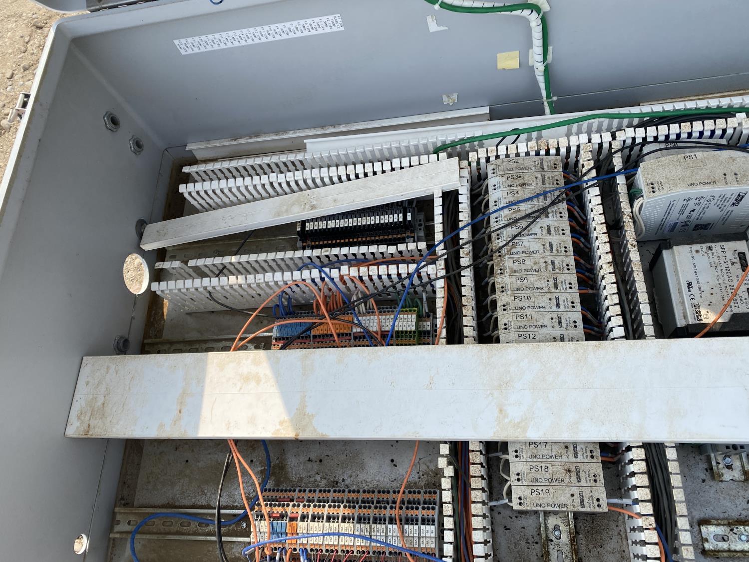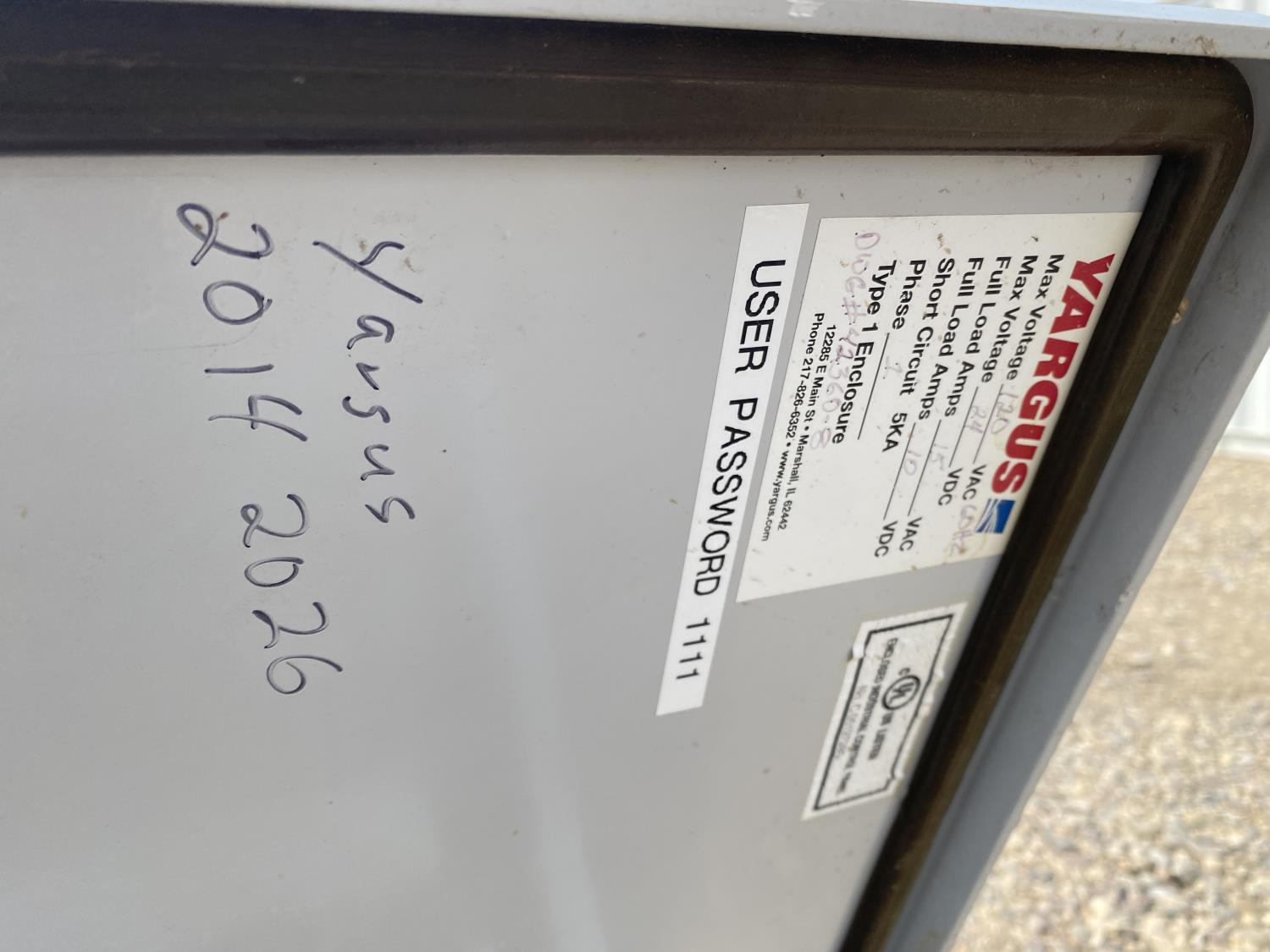 120v, single phase ac, 24v DC, type 1 enclosure. Measures 3 ft L x 4 ft T x 14 inch W