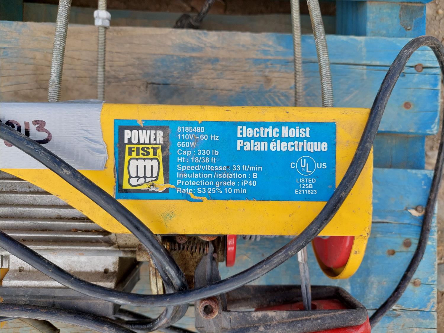 115/230V, 1/2HP Yale 1/4 ton hoist, 110V Powerfist 330 lb hoist