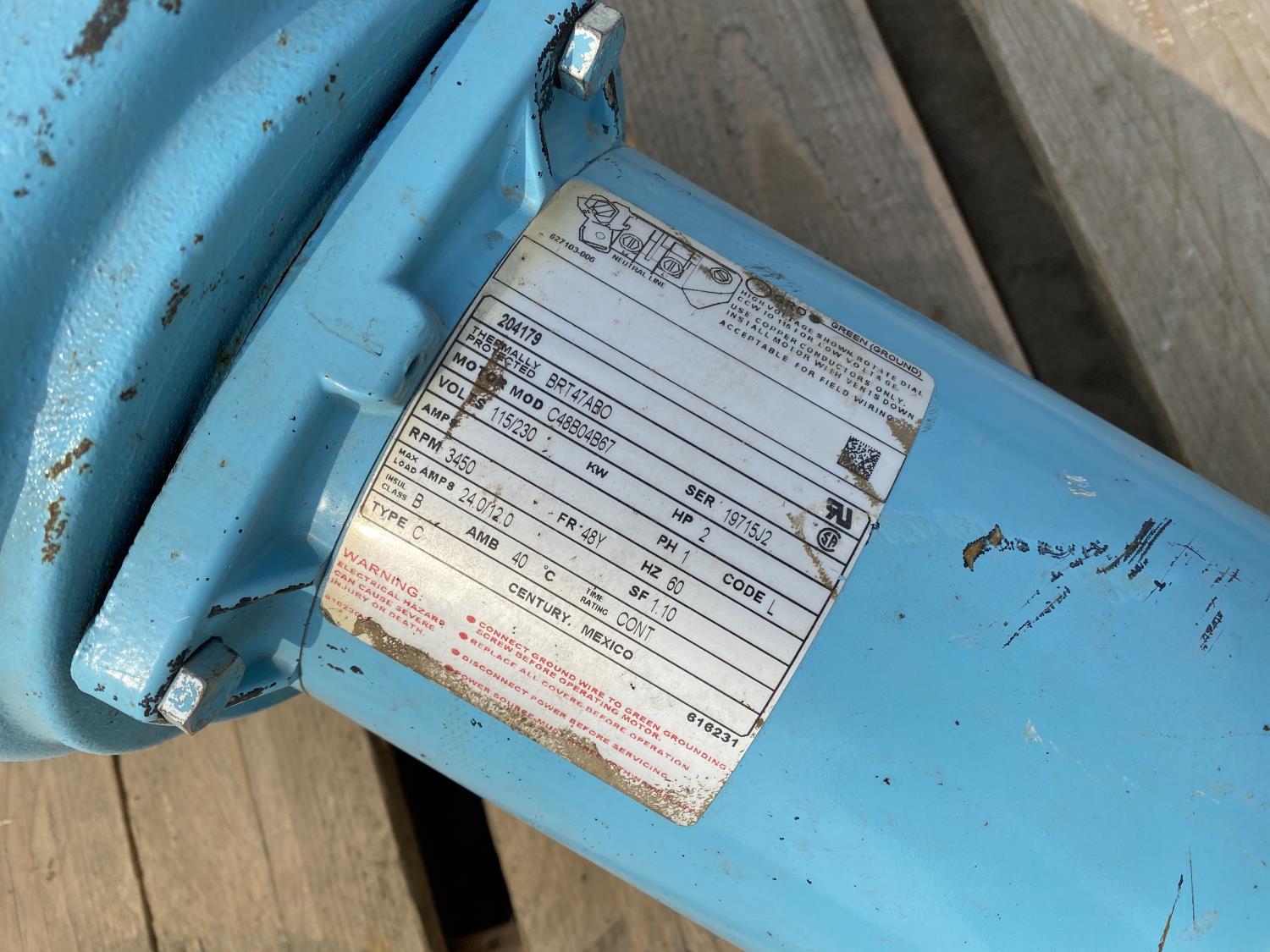 (1) 2 HP. 115/230v, single phase, 3450 RPM, (1) 1-1/2 HP, 115/230v single phase, 3450 RPM