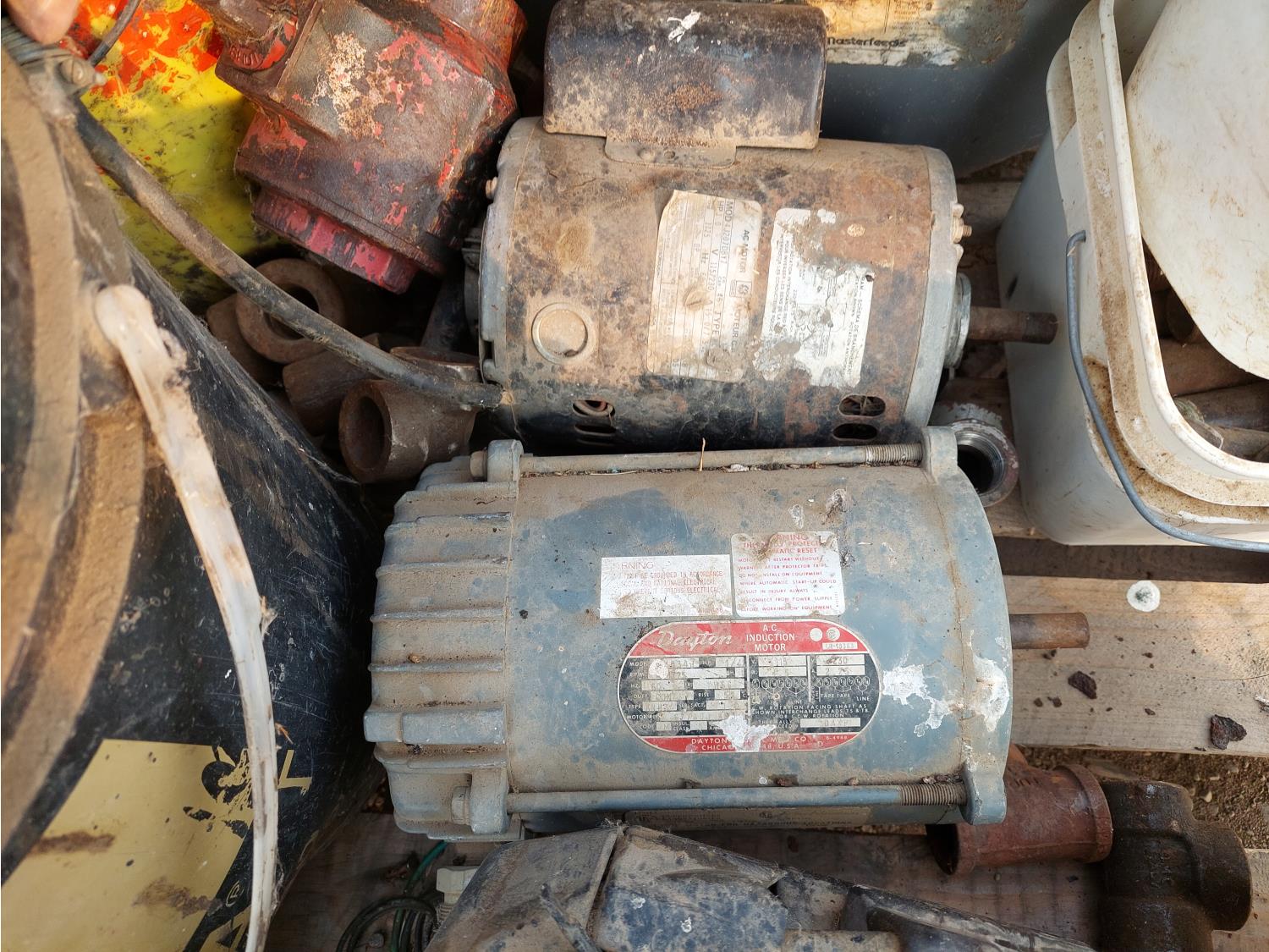 includes 115/230V, 1/4HP, single phase Dayton electric motor, 115/230V, 1HP, single phase CGE electric motor, miscellaneous pipe fittings, and miscellaneous electrical cable