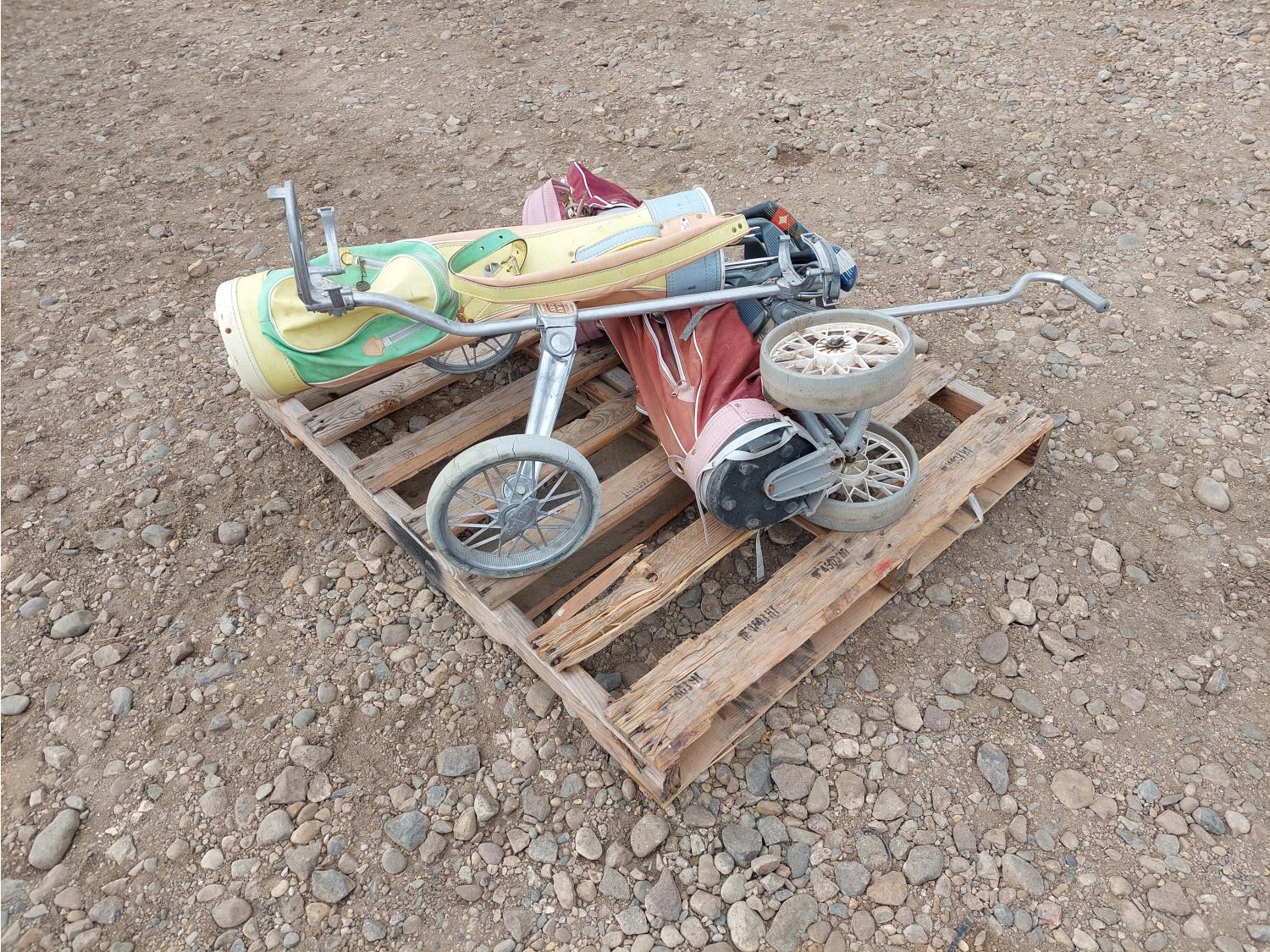 1665 Qty of (2) Golf Bags On Carts w/ Clubs