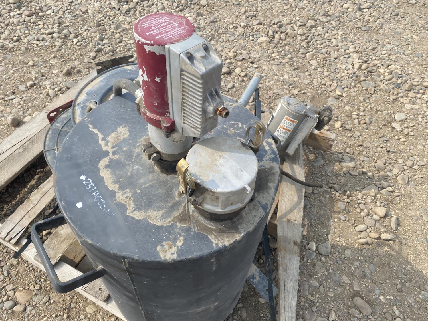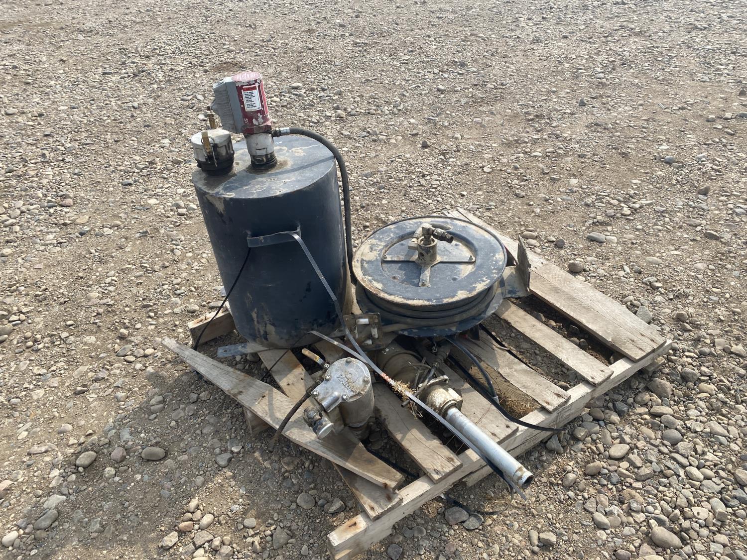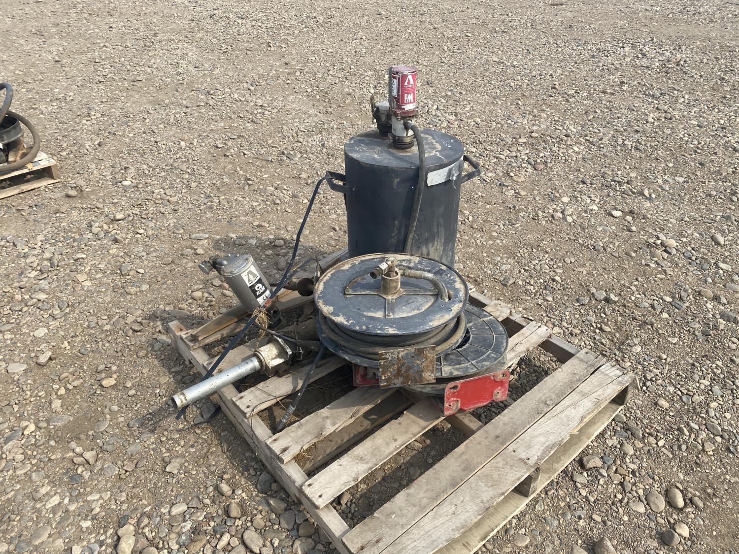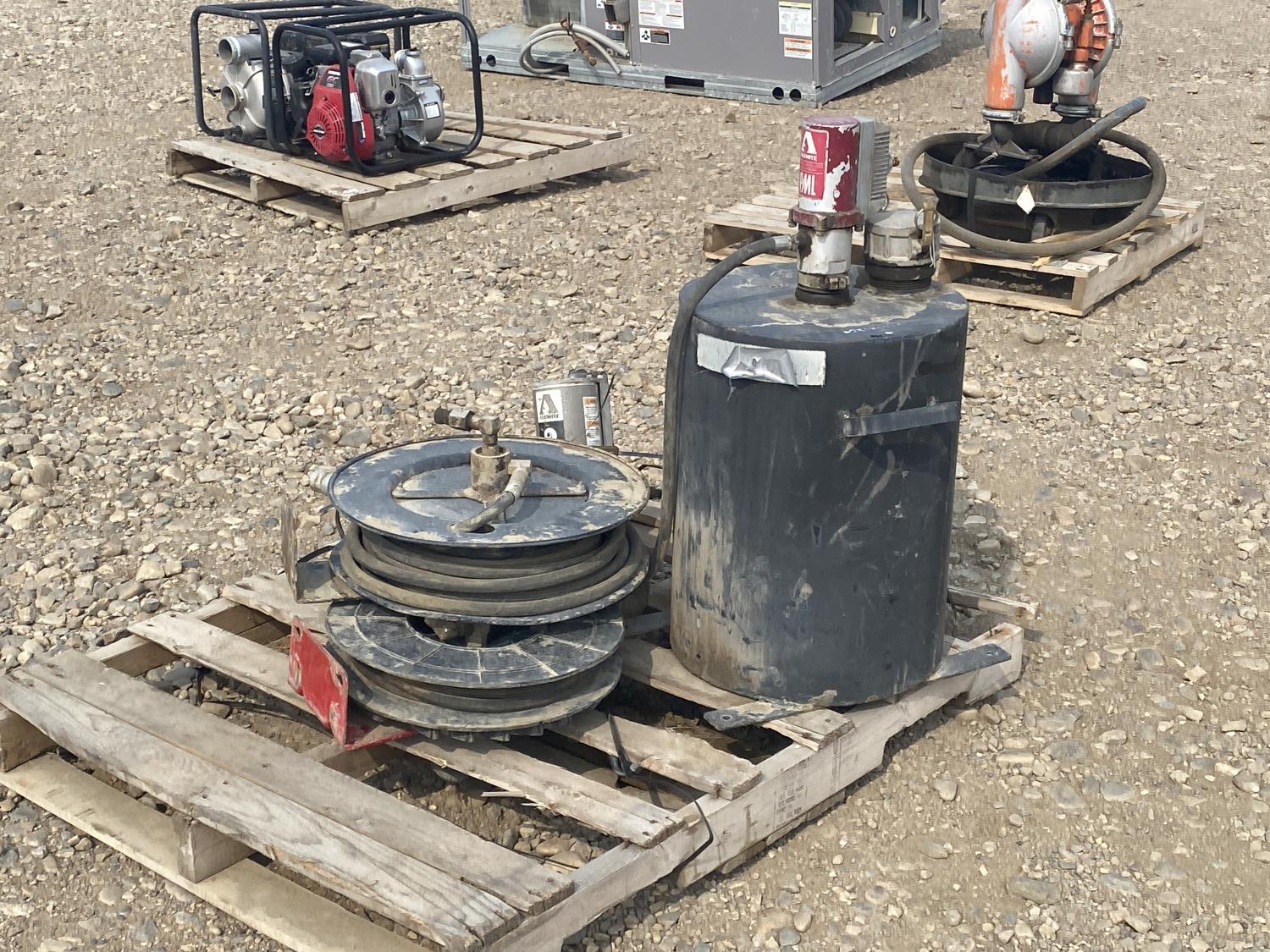 1241 Qty of (2) Hose Reels w/ Transfer Tank & Alemite Pump