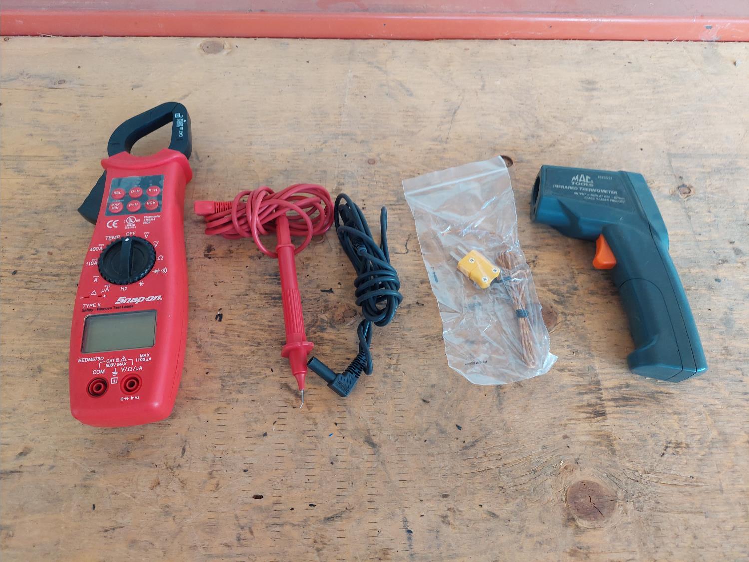 (1) Snap-on EEDM575D digital clap meter, (1) Mac Tools infrared thermometer
