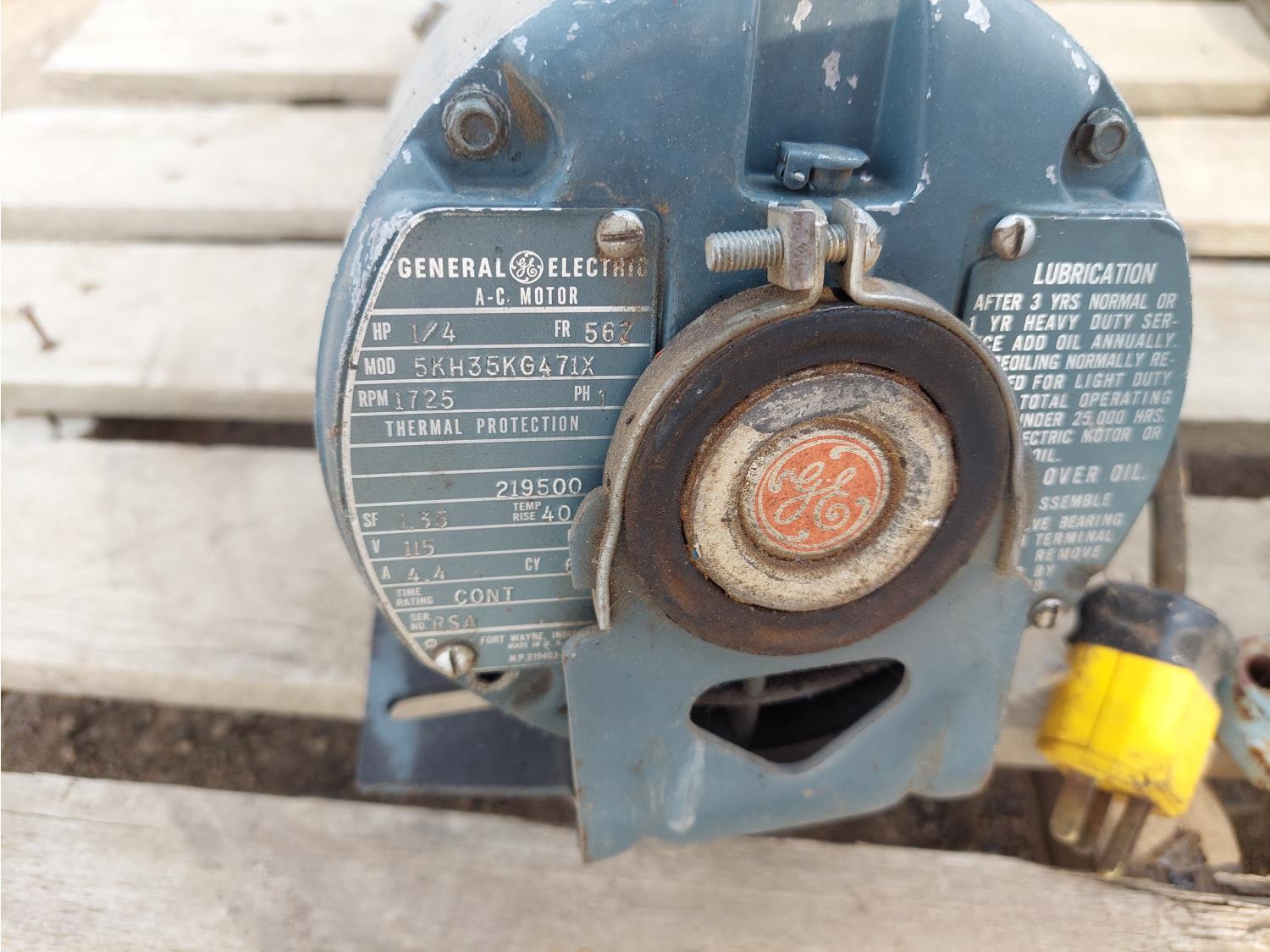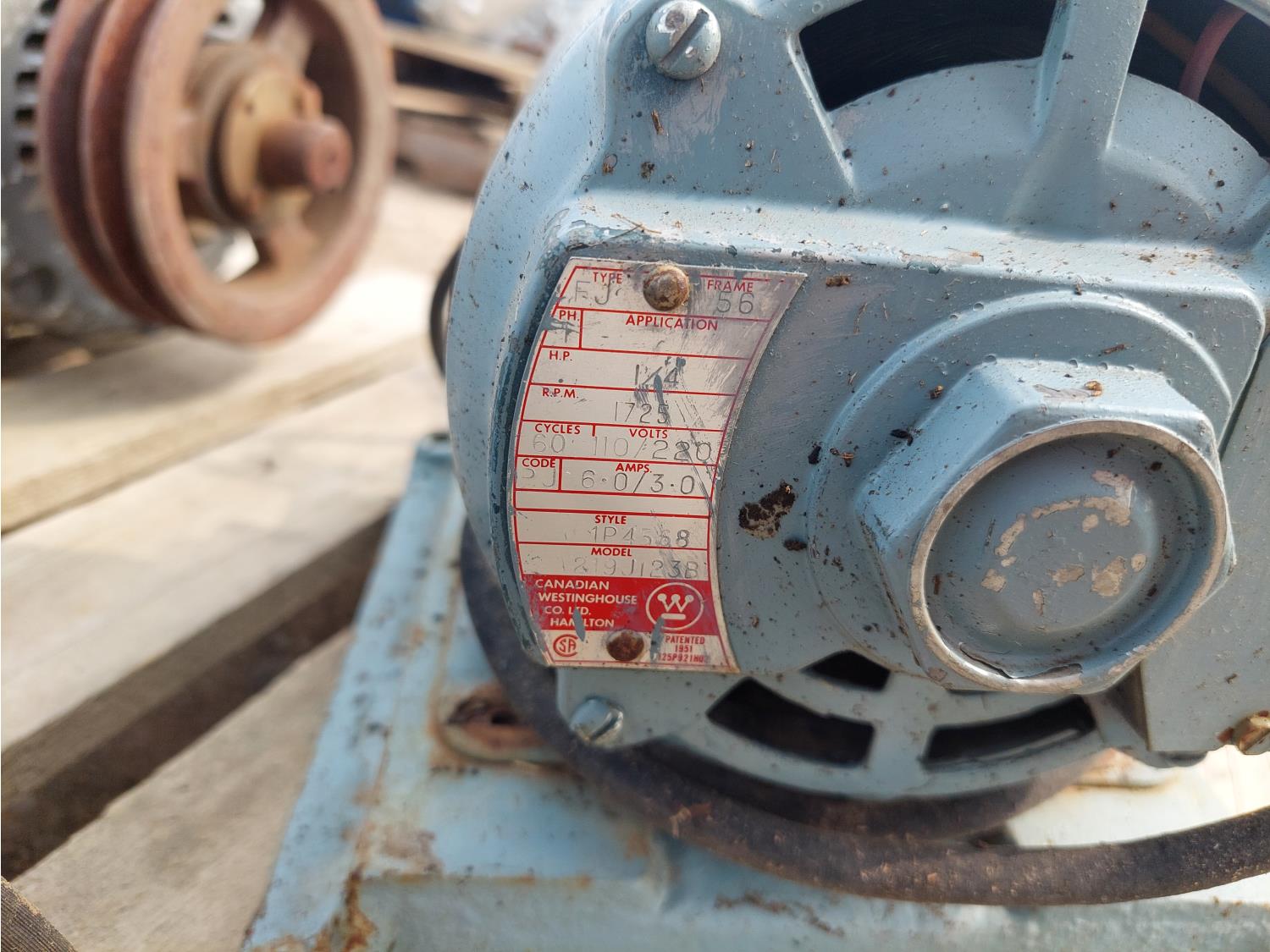 (1) CGE 115/230V, 3/4 HP, single phase, (1) Baldor 115/208-230V, 3HP, single phase, (1) Canadian Westinghouse 110/220V, 1/4HP, single phase, (1) GE 115V, 1/4HP, single phase