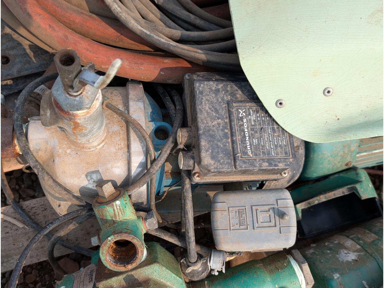 (2) 1/2 HP, 115/230v single phase. (1) Myers 1 HP, 115/230 single phase. (1) Grundfos 1/2 HP, 115v single phase