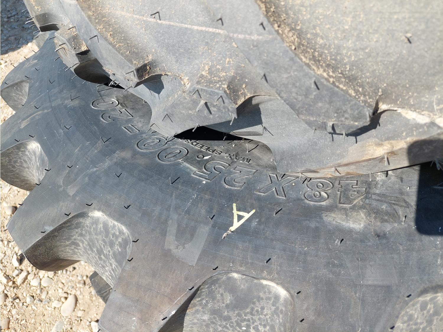 sizes include (3) 11.2-24, 12R22.5, and 48x25.0-20