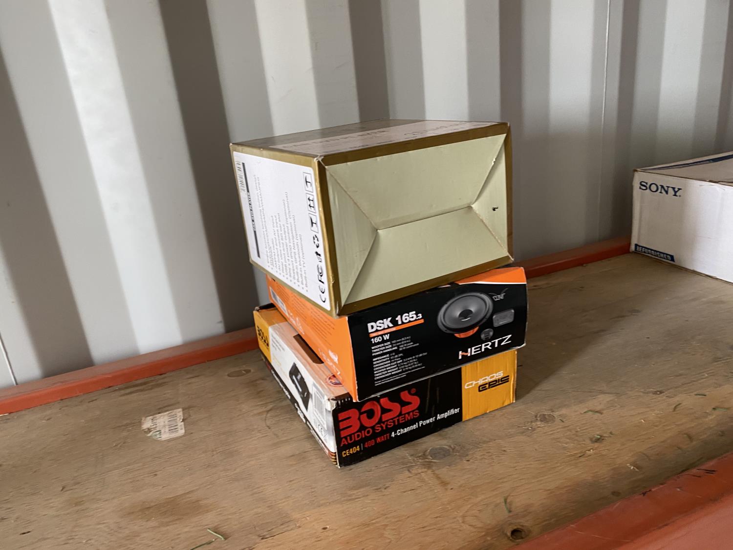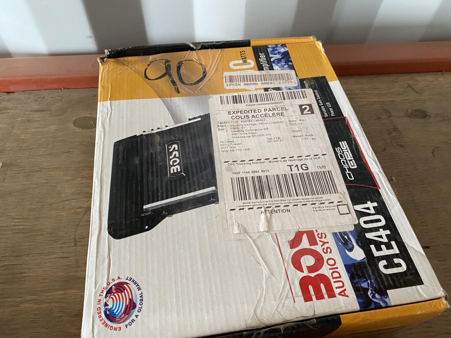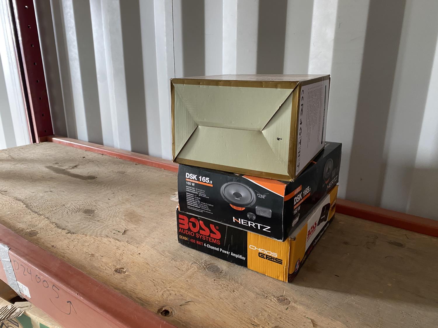 (1) Boss 400w 4 channel amplifier, (1) DSK 165.3 two way system, 6.5 inch subwoofer, 165 mm tweeters, 80w RMS, (1) Ouku vehicle DVD player