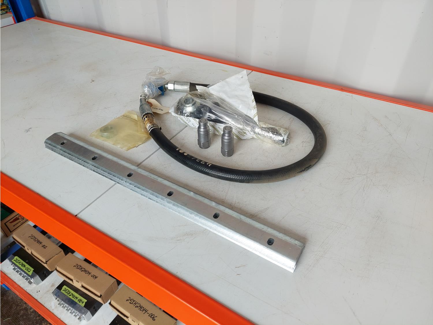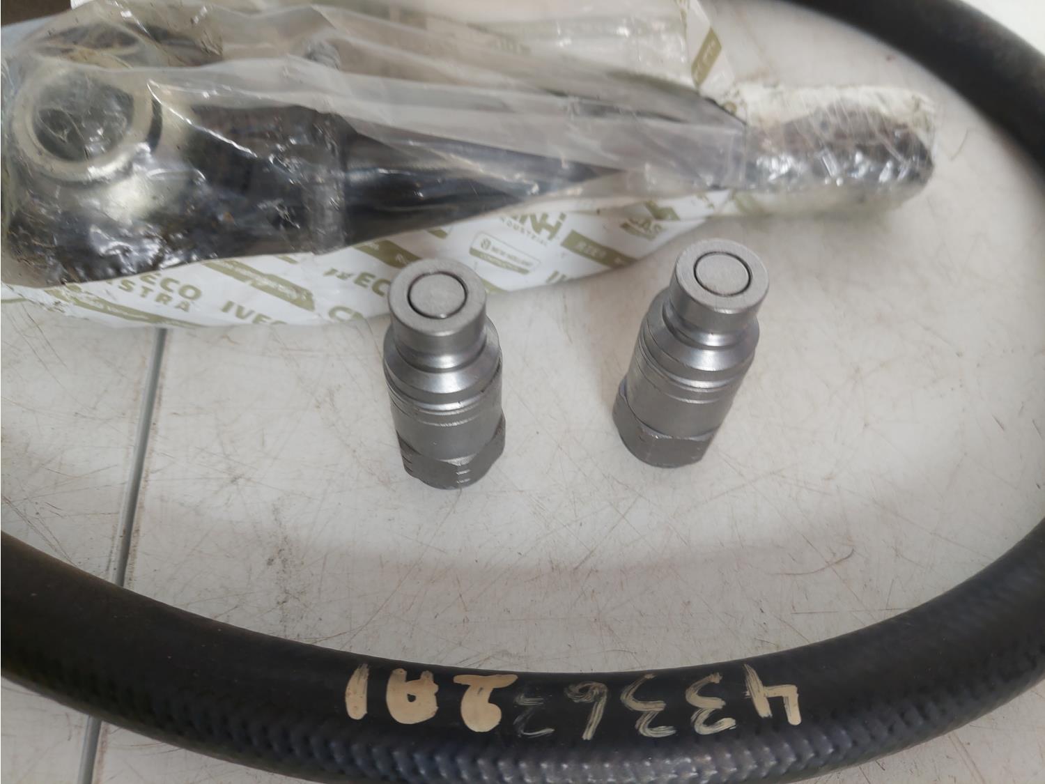 includes eyebolt part number 84561262, hose part number 433632A1, (2) flat face hydraulic nipples part number C702-04-04, (2) sleeves part number 87747362, and (5) 18.5 inch L x 1.5 inch W protectors part number MCD180117